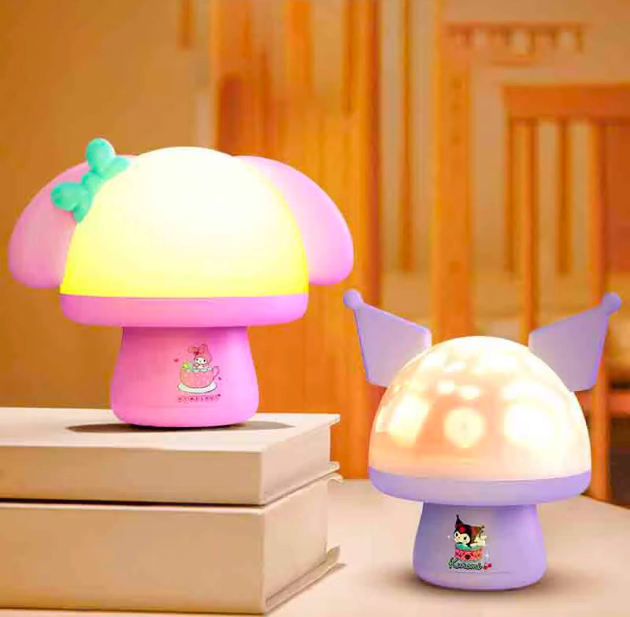 Delight your little ones with the Mushroom Starry Sky Lamp featuring kids' melodies! Adorned with adorable characters like Sanrio’s My Melody and Kuromi, this cute pink and purple lamp creates a magical atmosphere, making it a perfect Christmas gift for kids.