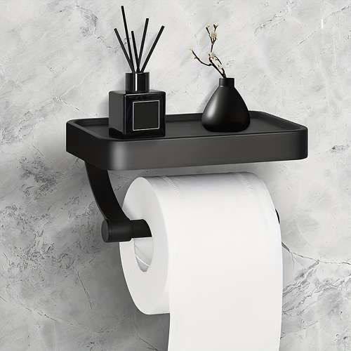 Stainless Steel Toilet Paper Holder with Phone Shelf – Wall-mounted, rustproof, and durable. Combines convenience and function with a sleek design. Perfect for bathrooms and washrooms. Holds toilet paper securely and keeps your phone or items within reach.