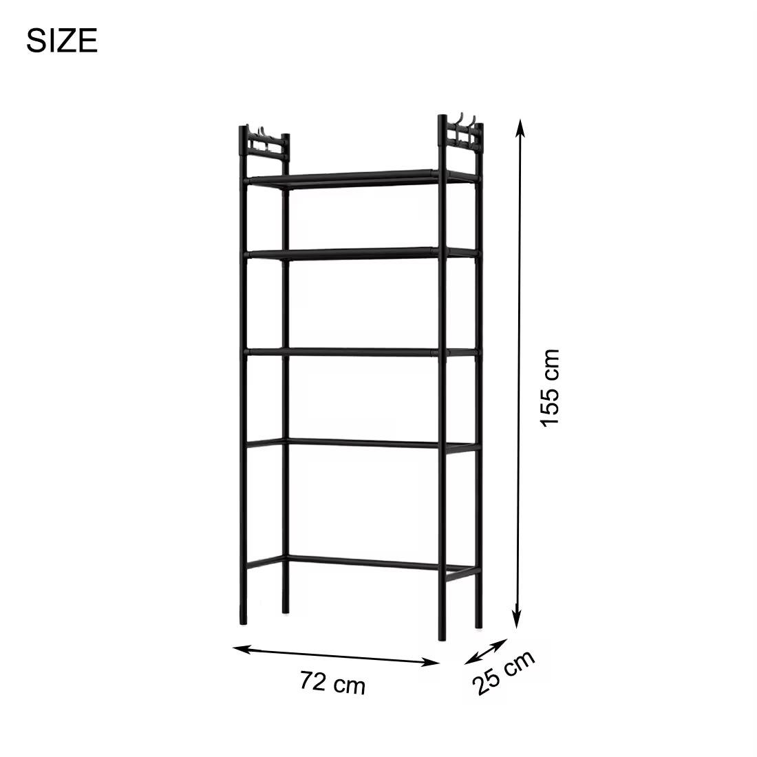 Maximize your space with this new washing machine organizer rack. Featuring a multi-layer, perforation-free design, it’s perfect for storing bathroom essentials. Floor-standing and space-saving, available in white or black. Ideal for modern laundry areas. Size: 155×26×72 cm.