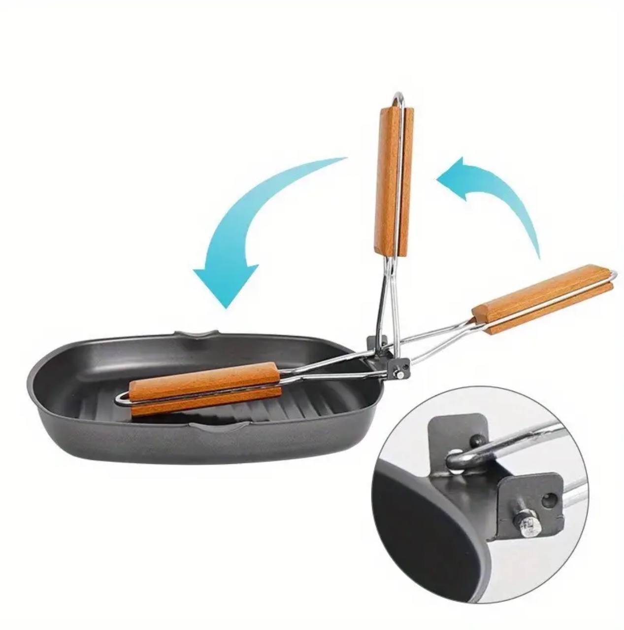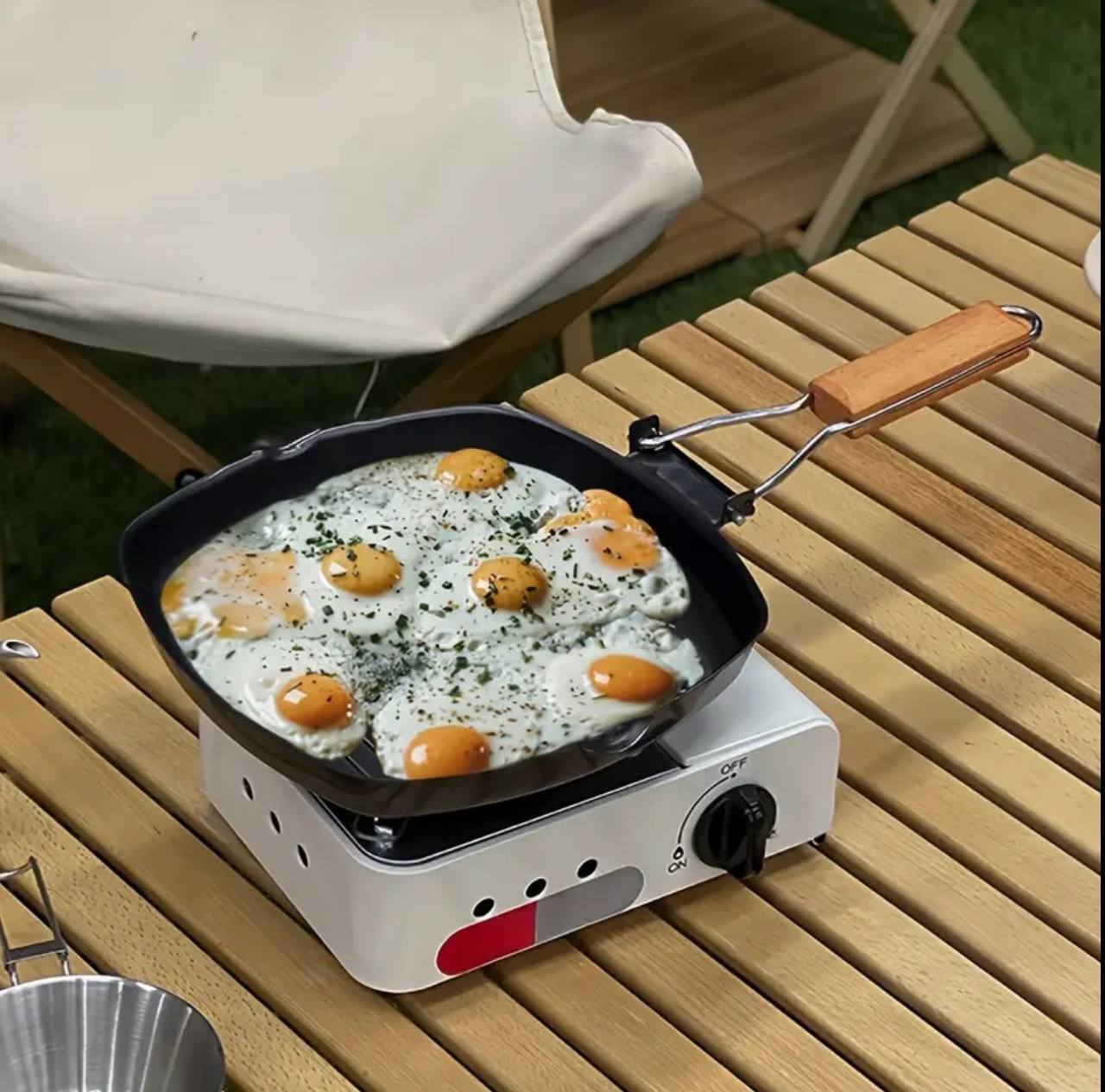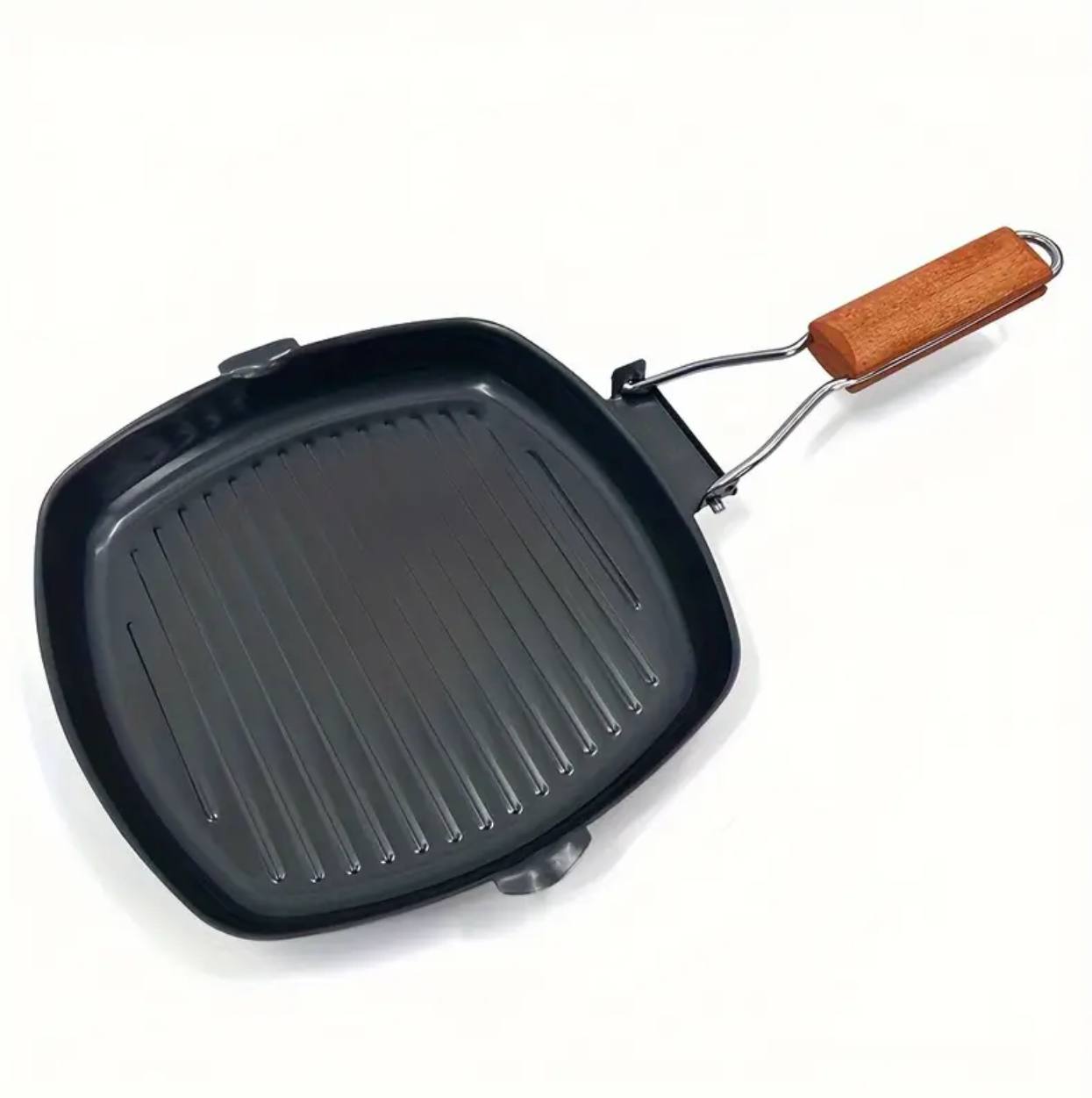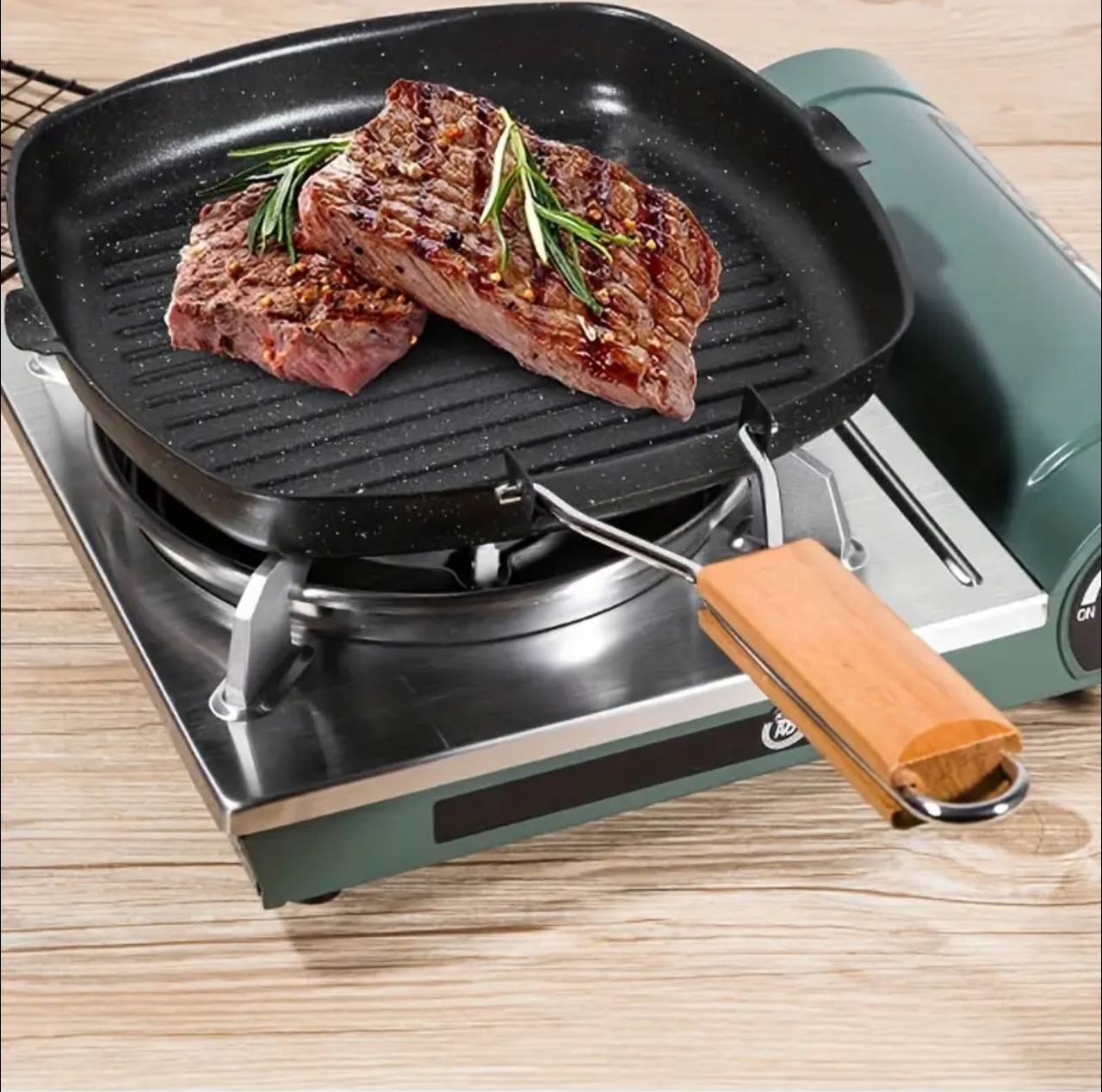 Upgrade your cooking with this non-stick square steak pan. Measuring 24x28cm, it features a wooden handle, durable scratch-resistant enamel, and expert non-stick coating. Perfect for grilling or stewing meats and veggies—ideal for home, BBQs, or travel adventures