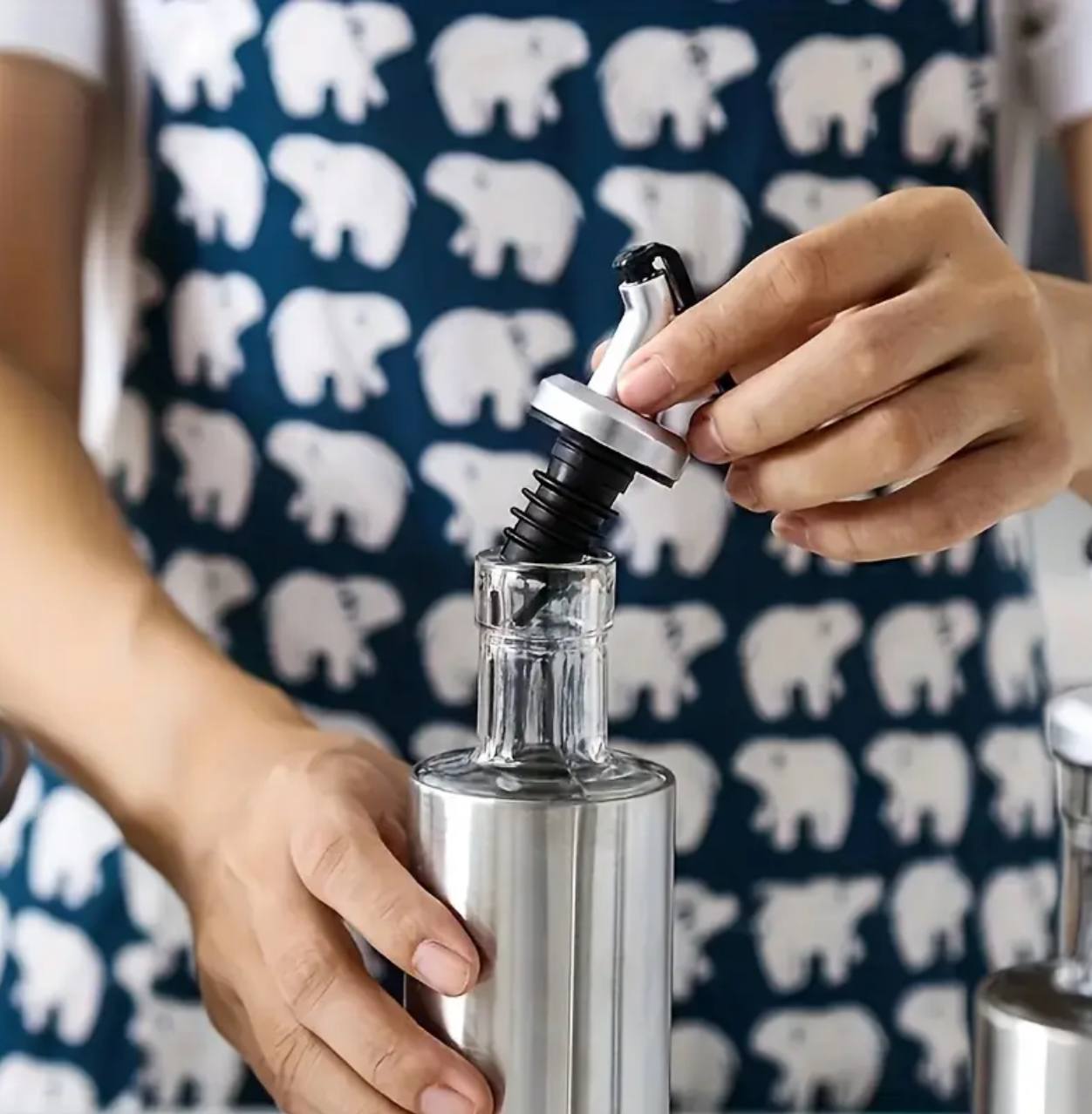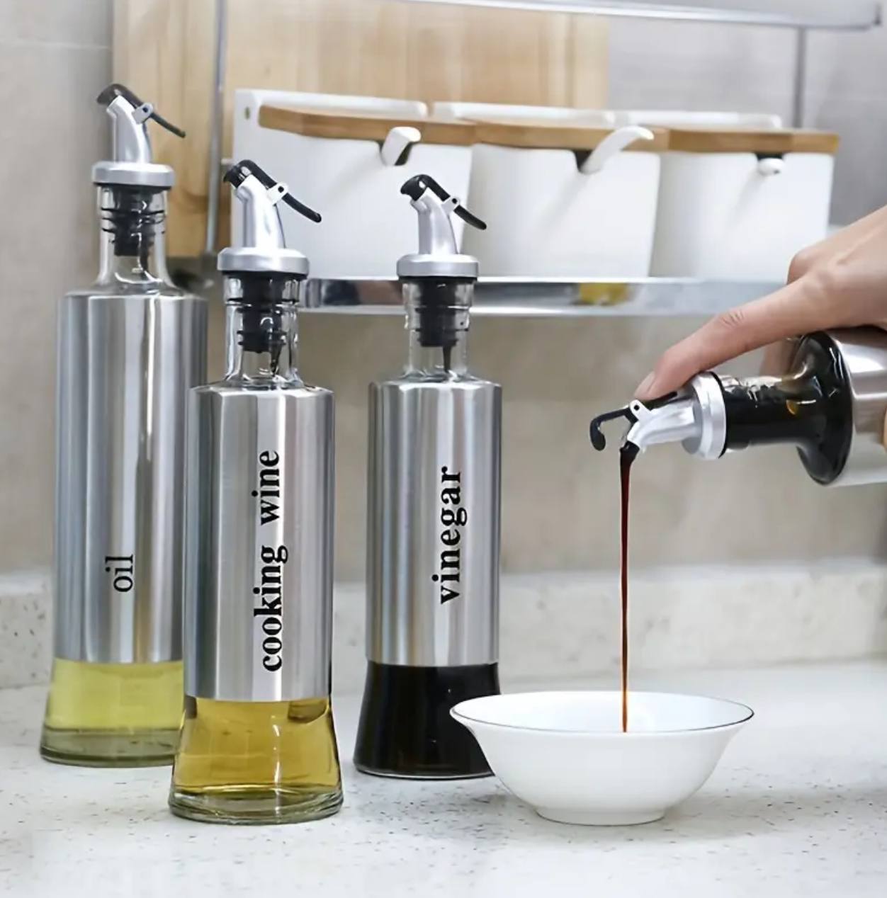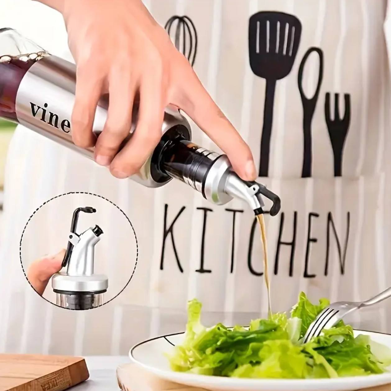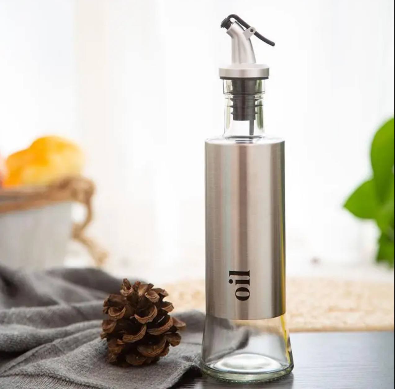 Stylish and functional, this 350ml dispenser combines durable glass with a sleek stainless steel design. Perfect for storing and pouring oil, vinegar, or dressings, it adds elegance to your kitchen while ensuring precise and mess-free use.