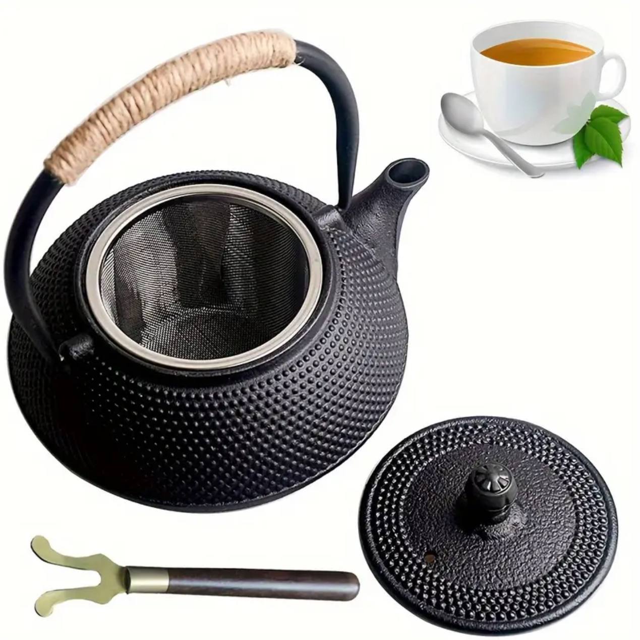 Experience timeless elegance with this original heavy-duty cast iron tea pot. Complete with an infuser, cast iron coaster, and spoon, it ensures perfect tea brewing. Durable and stylish, it’s the ideal choice for tea enthusiasts and a sophisticated addition to any kitchen.