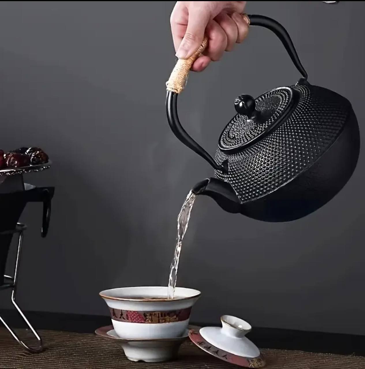 Enjoy premium tea brewing with our original heavy-duty cast iron teapot. Includes an infuser, cast iron coaster, and spoon. Crafted for durability and heat retention, it enhances flavor while adding a touch of elegance to your tea experience.