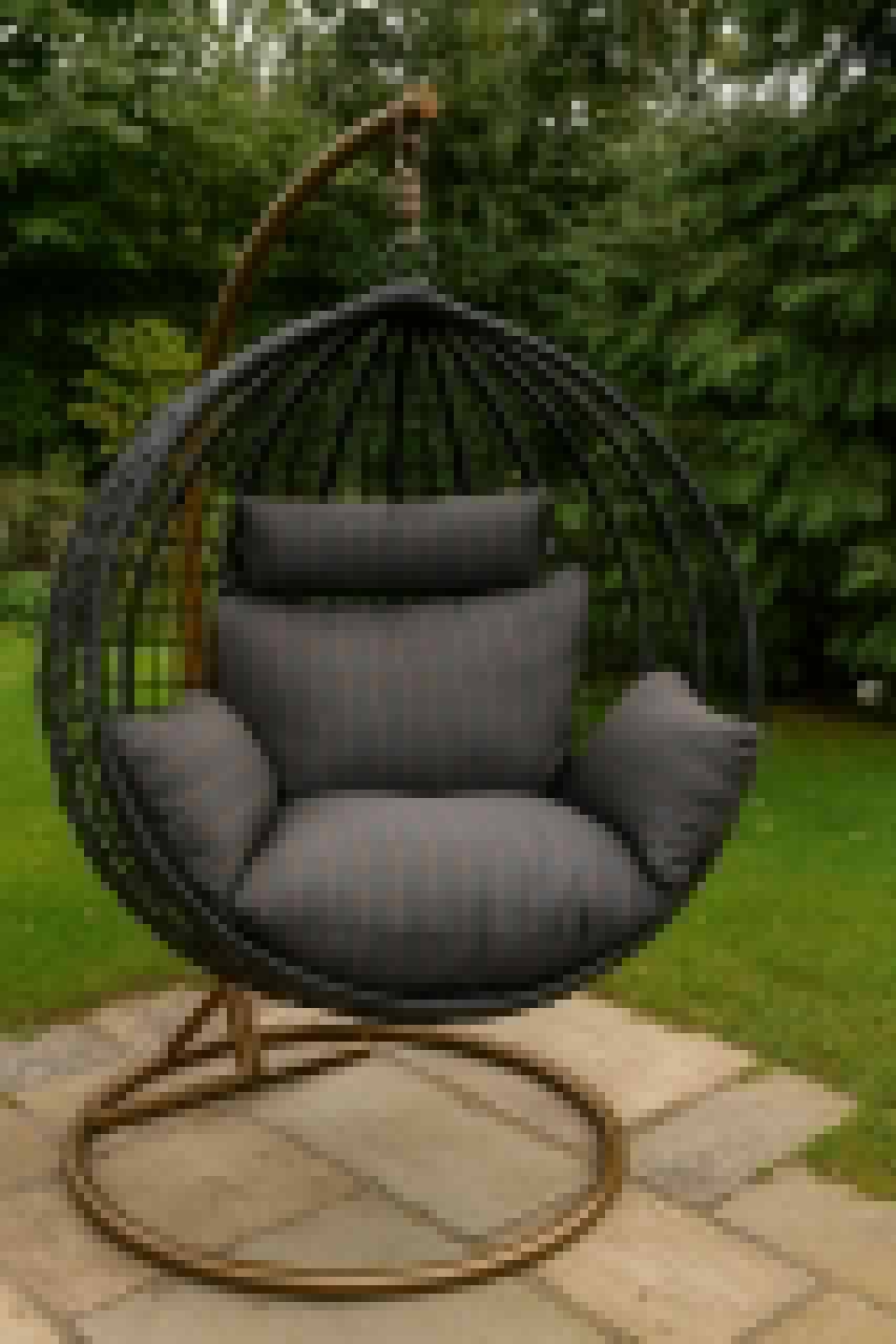 Relax in style with this round outdoor swing basket, available in white, black, beige, chocolate, and golden. Comes with cozy pillows in checkered and assorted colors—perfect for patios, balconies, or gardens.