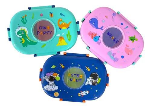 Oval Dino Cartoon themed Healthy Plastic Lunch Box,