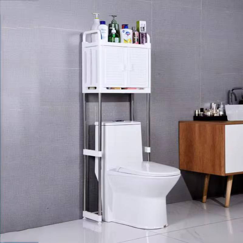 Maximize your bathroom space with our Over-the-Toilet Storage Rack. Featuring a 2-door cabinet, adjustable inner shelf, and open shelf, this freestanding organizer keeps essentials neat while adding a sleek, functional touch to any bathroom.