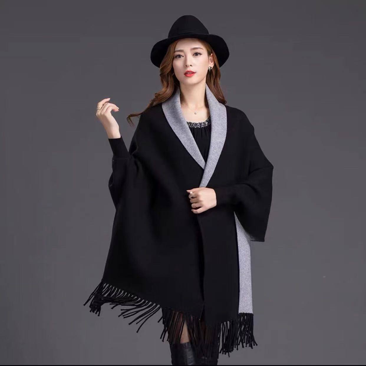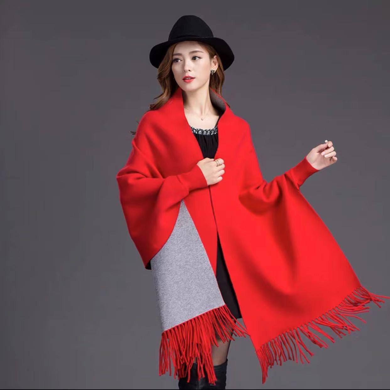 Stay cozy and chic with our plain double-sided long sleeve poncho shawls. Featuring elegant tassels, they offer warmth and versatile style—perfect for layering during chilly days or adding flair to any outfit.