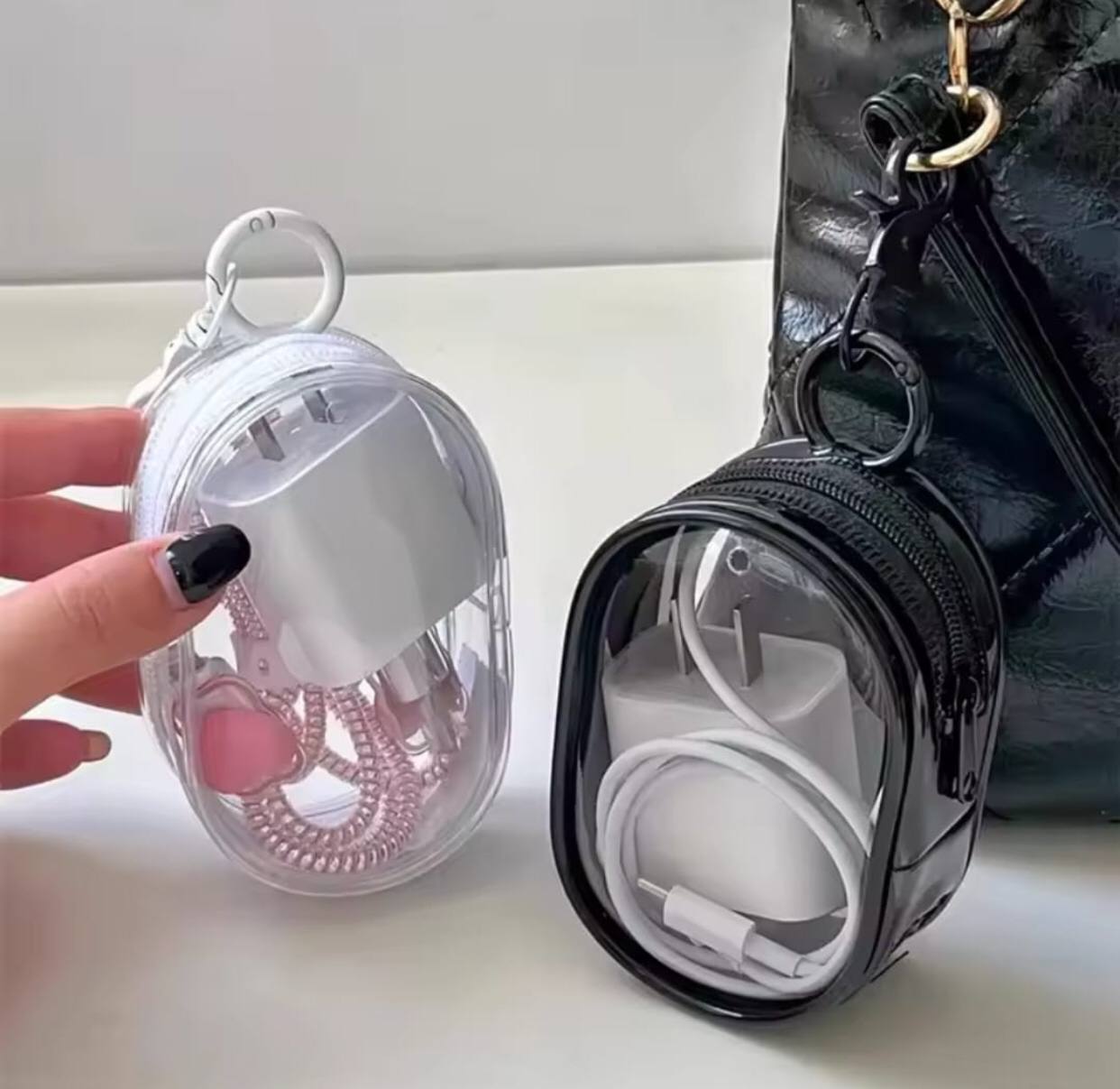 Keep small items safe with our portable mini clear zipper storage bag! Featuring a keychain and cute cartoon design, it’s perfect for toys, earphones, chargers, or gifting surprises on the go.
