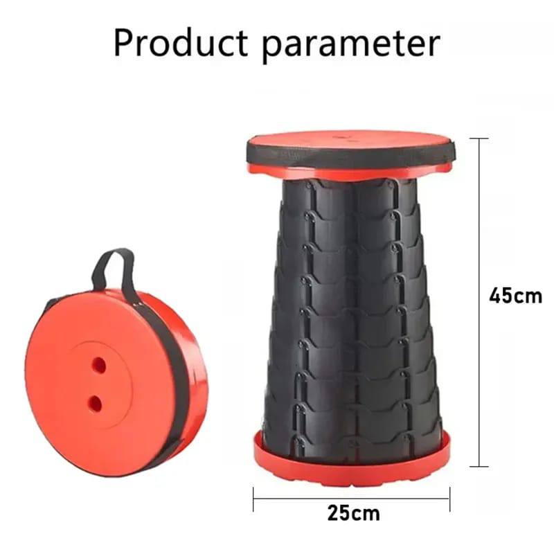 Compact and durable, this portable retractable plastic stool is perfect for fishing, travel, or outdoor adventures. Adjustable height, foldable design, lightweight build. Doubles as an ottoman. Size: 45×25cm. Available in Red and Green.