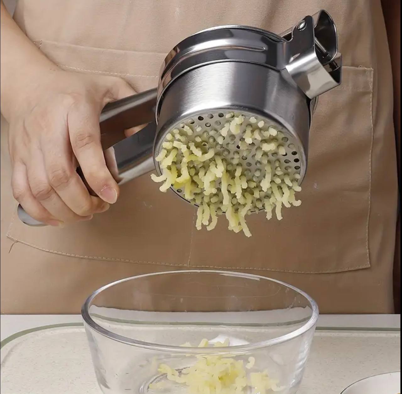 Effortlessly create smooth mashed potatoes, purees, and juices with our Stainless Steel Potato Masher Ricer Press. Perfect for fruits, vegetables, and baby food. Durable, easy to use, and versatile, it’s a must-have tool for every kitchen