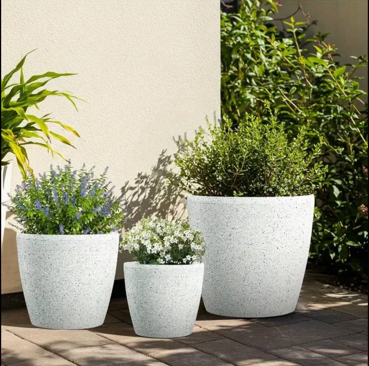Enhance your garden or home with Premium Marble-Coated Minimalist Flower Planters. Made from heavy PP, available in black, white, grey, beige, and brown. Choose from two sizes (50x45cm & 45x40cm) for stylish, durable plant display.