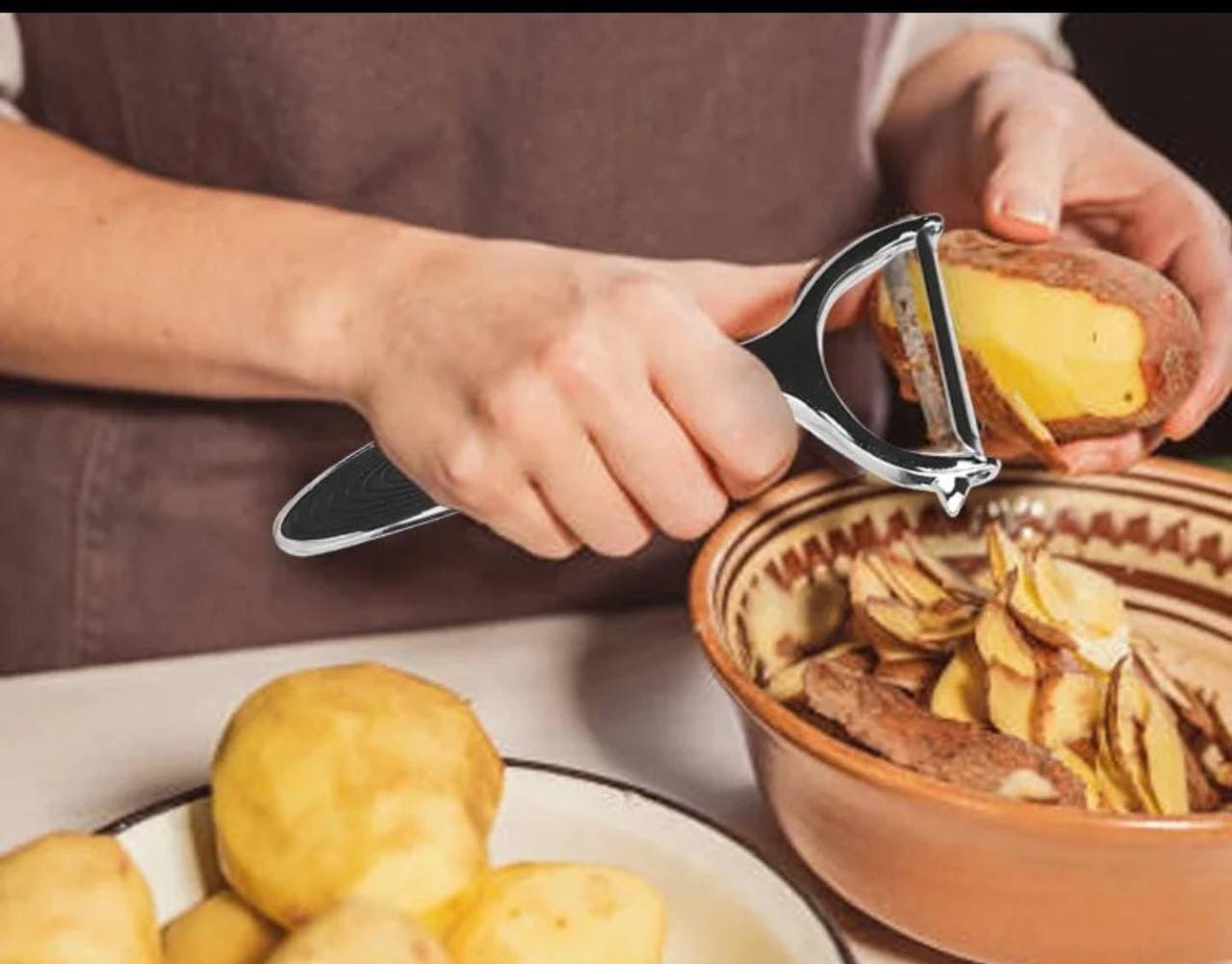 Upgrade your kitchen with this Premium Stainless Steel Vegetable Peeler, featuring an ultra-sharp blade for smooth, precise peeling. Its ergonomic comfort grip handle reduces fatigue, while the compact design makes it perfect for fruits and vegetables.
