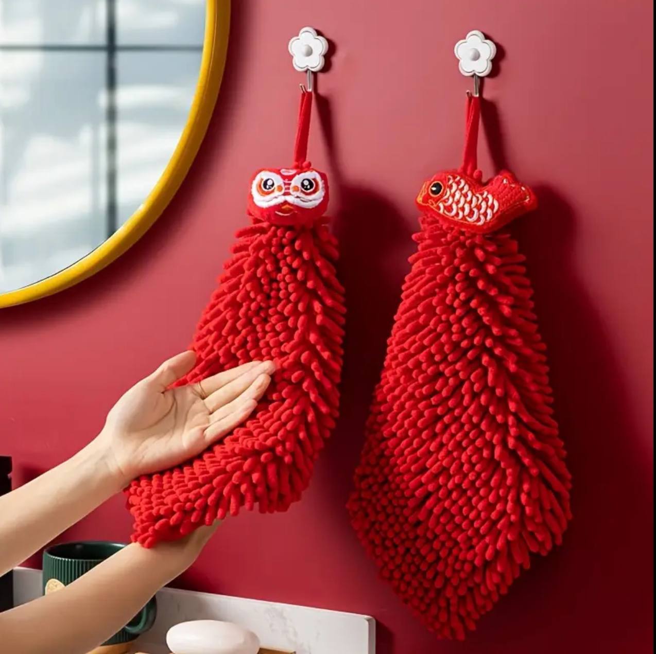 Add a pop of red to your kitchen or bathroom with these super-soft chenille hand towels! Made of 100% microfiber, they’re quick-drying, skin-friendly, and ultra-absorbent. Compact 27x27cm size for versatile use and lasting comfort.