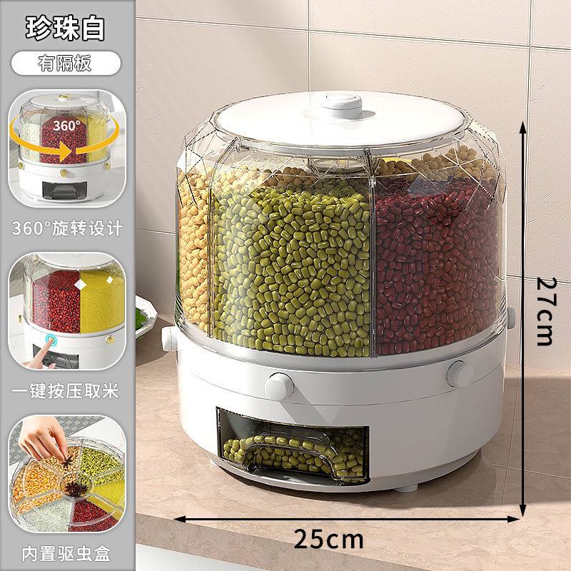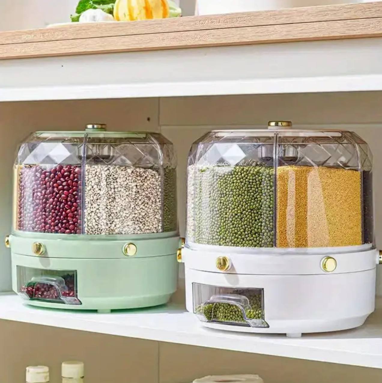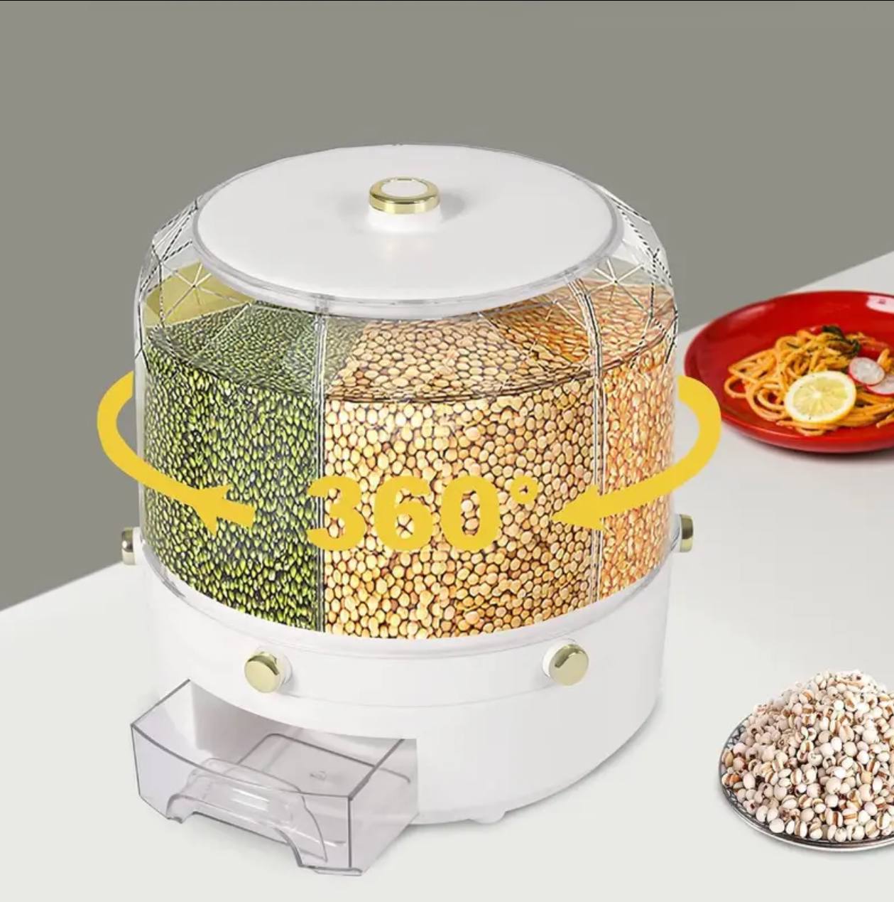 Organize effortlessly with our Rotating 6-Compartment Storage Container. With a 9.5kg capacity and 360° rotation, it’s perfect for storing six types of cereals or grains. Made of BPA-free food-grade material, it’s compact, durable, and convenient for daily use.