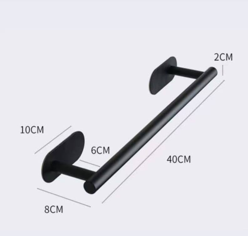Durable self-adhesive towel bar with strong adhesive, requiring no drilling. Rust-proof and waterproof stainless steel ensures longevity. Modern, space-saving design fits any bathroom or kitchen. Available in sleek black and silver, combining functionality with stylish elegance.