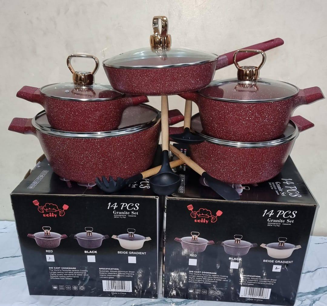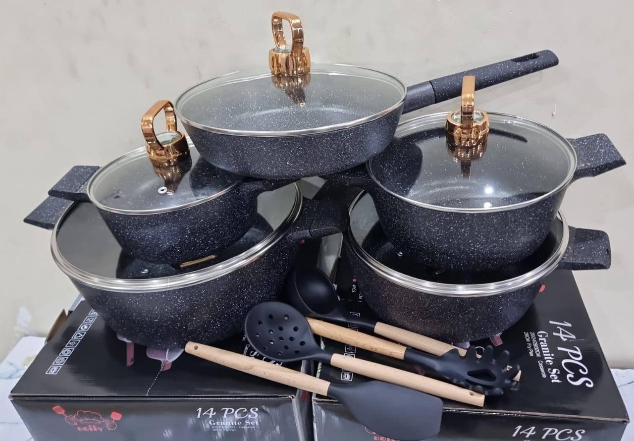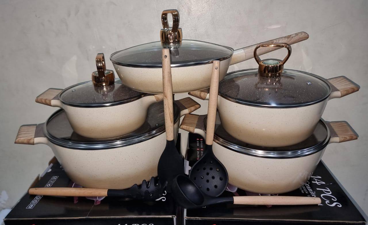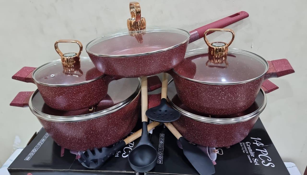 Introducing the luxurious Uoiiy 14pc granite cookware set with shining golden caps—now available in 3 stunning colours! Non-stick, durable, and elegant, it’s the perfect upgrade for stylish, high-performance cooking every day.