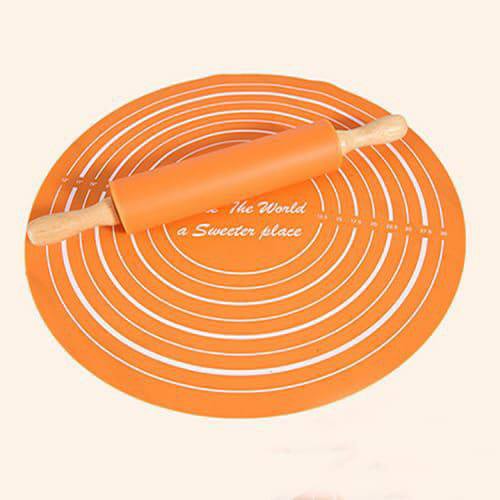 Upgrade your baking with our Silicone Baking Mat & Rolling Pin Set! Featuring a non-stick, round pastry mat and a sturdy rolling pin, it’s durable, non-slip, reusable, and easy to clean. Available in vibrant colors—perfect for effortless dough rolling!