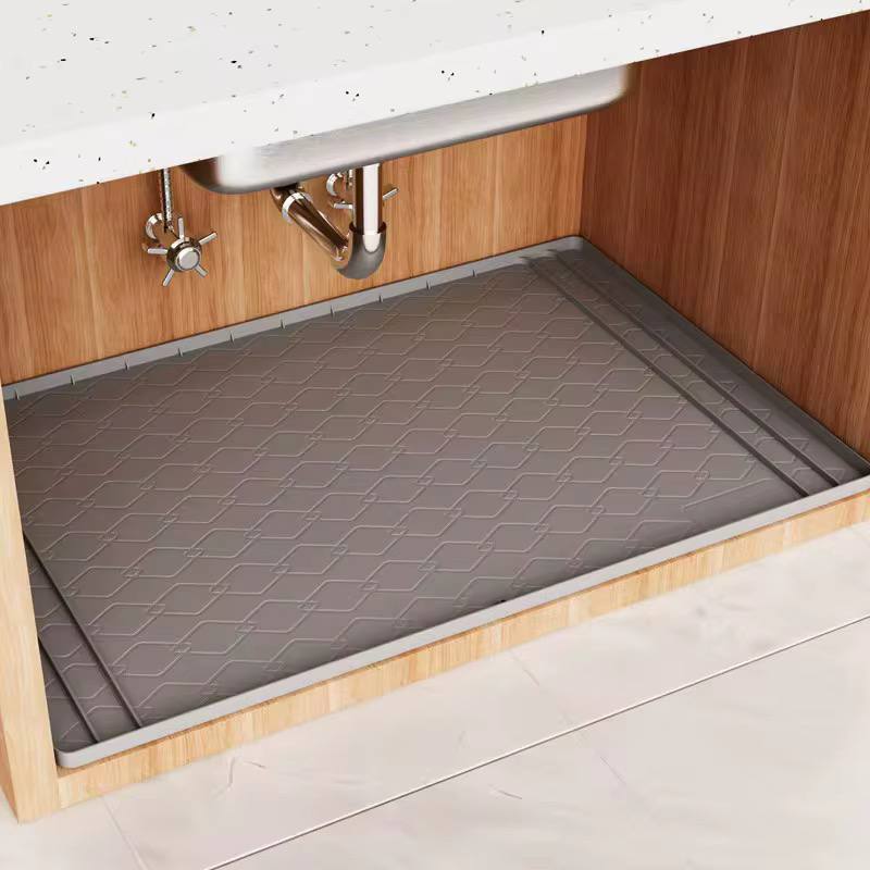 Protect your cabinets with this silicone waterproof under-sink shelf mat. Sized 86.4×58.5cm, it’s durable, flexible, and trimmable to fit any space—perfect for catching spills, leaks, and keeping your sink area clean and dry.