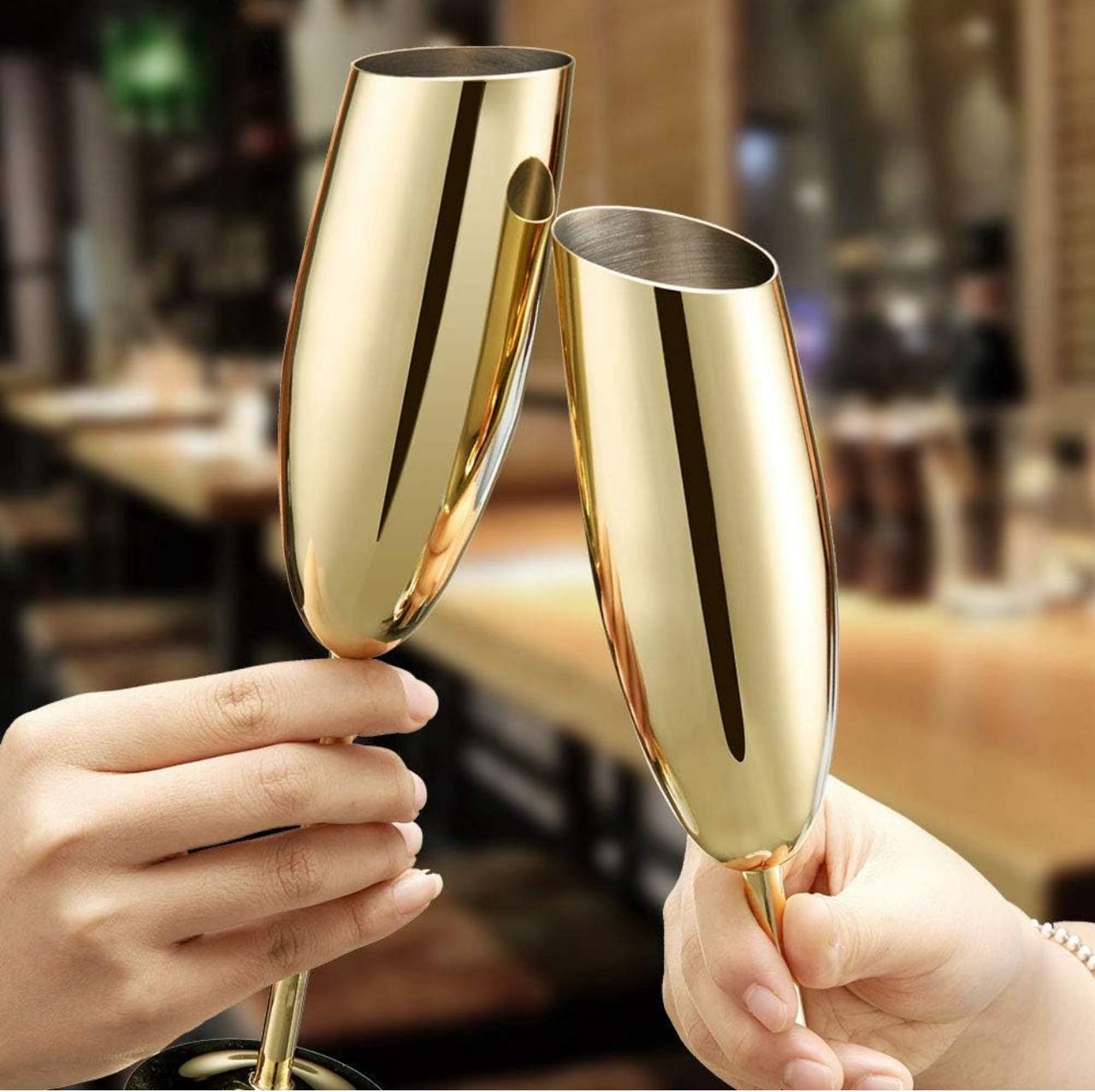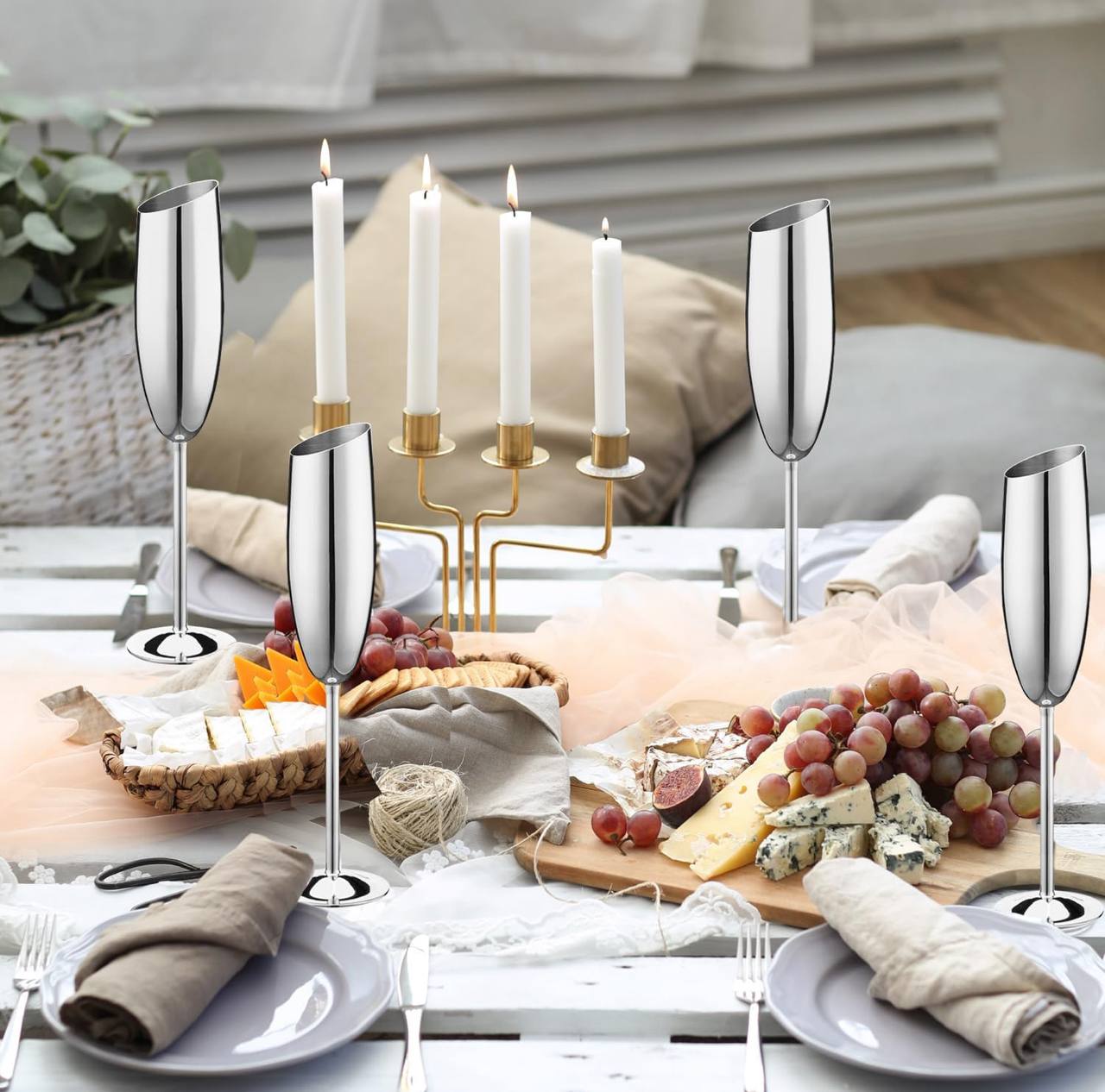 Silver Stainless Champagne Flutes with Flat Rim Sophisticated vessel for any sparkling wine, Champagne,Prosecco, or Mimosas