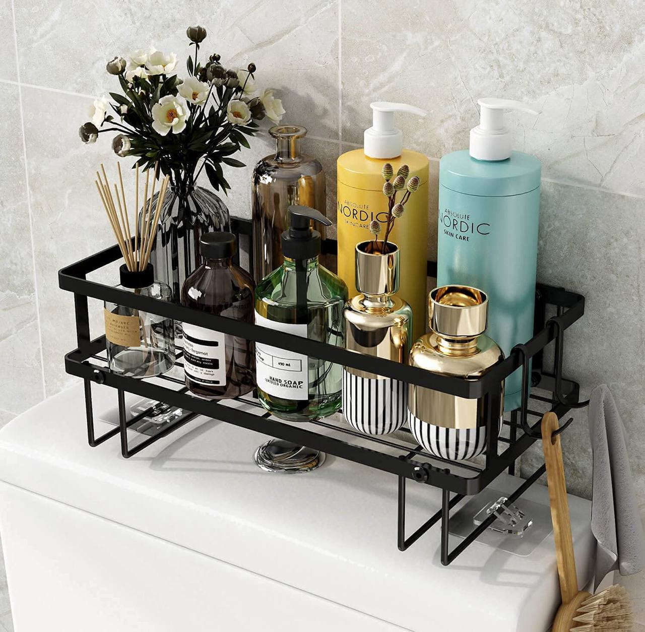 Upgrade your bathroom with this sleek single-layer wrought iron rack. Featuring a tissue holder and multi-functional storage, it’s perfect for shower gels and essentials. Stylish in black or white—no drilling needed!