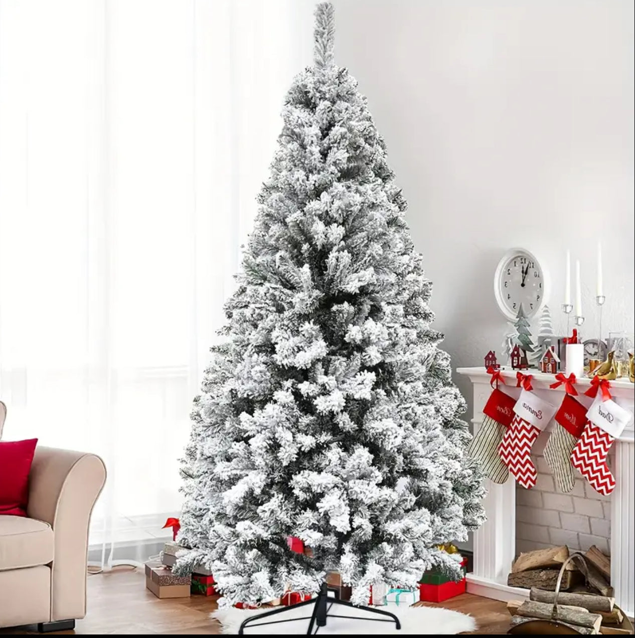 Bring the beauty of winter into your home with a Snow Flocked Christmas Tree. Adorned with realistic snow-dusted branches, this tree creates a frosty, wintery ambiance, perfect for displaying ornaments and lights. Available in various sizes, it adds a cozy, festive touch to your holiday decor, capturing the magic of a snowy Christmas day.