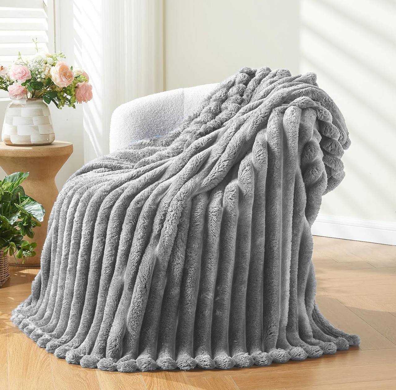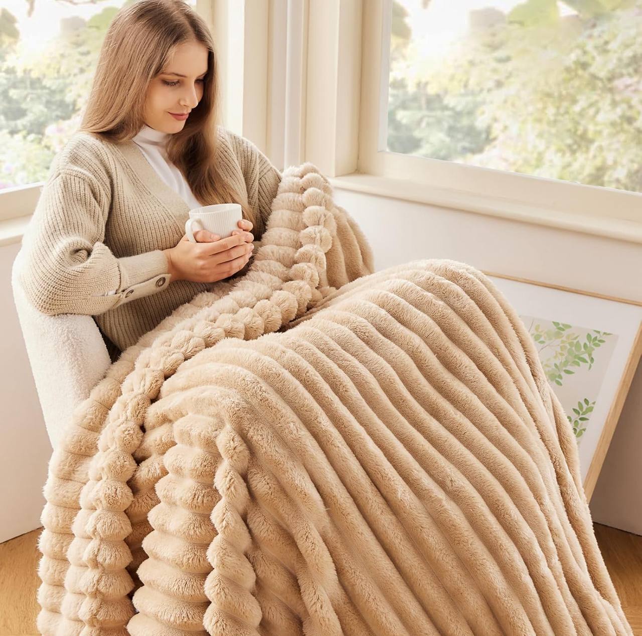 Soft Bubble Winter Throw Blanket – Size: 200×230cm (6×6). Ultra-cozy and warm, perfect for bed or couch. Available in grey, white cream, brown, peach, and black. Stylish, multifunctional comfort for chilly seasons.