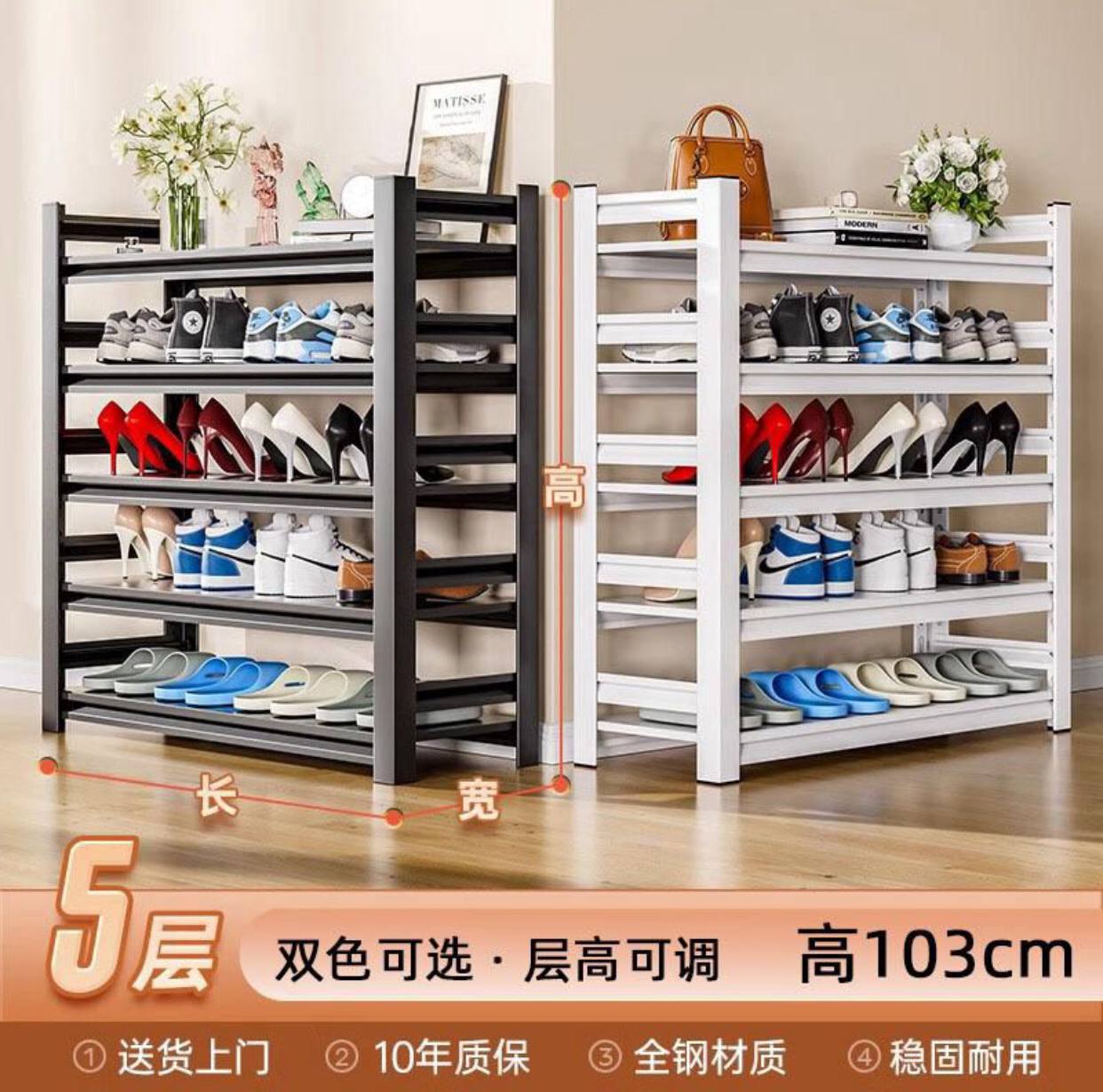 Organize your footwear with this space-saving 5-layer full metallic shoe rack! Durable and sleek in black, it holds multiple pairs, fits tight spaces, and adds modern style to any room.