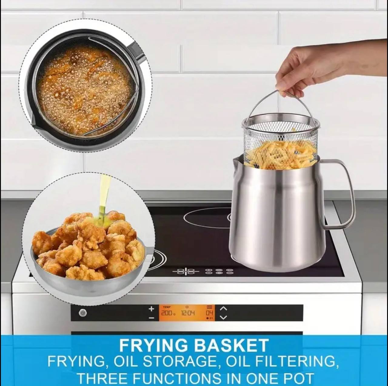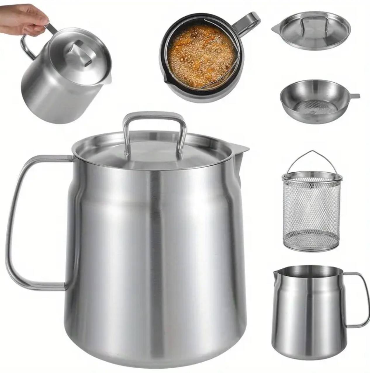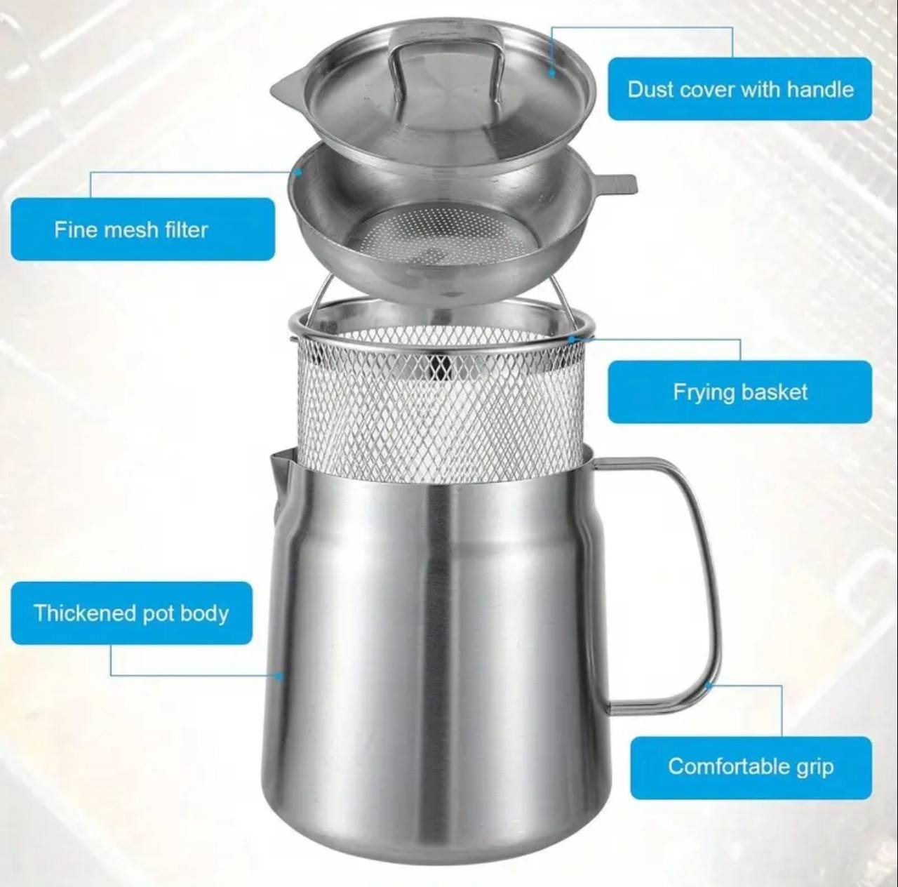 Keep your oil clean and ready with our Stainless Steel Oil Strainer Pot. Featuring a 2-liter capacity and a handy frying basket filter, it’s perfect for easy, mess-free oil straining and reuse. Durable and practical kitchen essential!