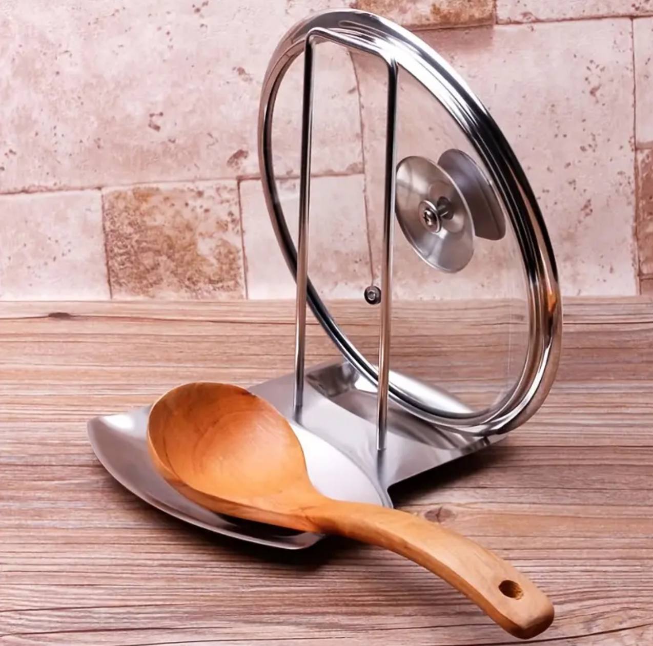 Stainless Steel Silver Pan Pot lid Rack and serving spoon Rest / Holder