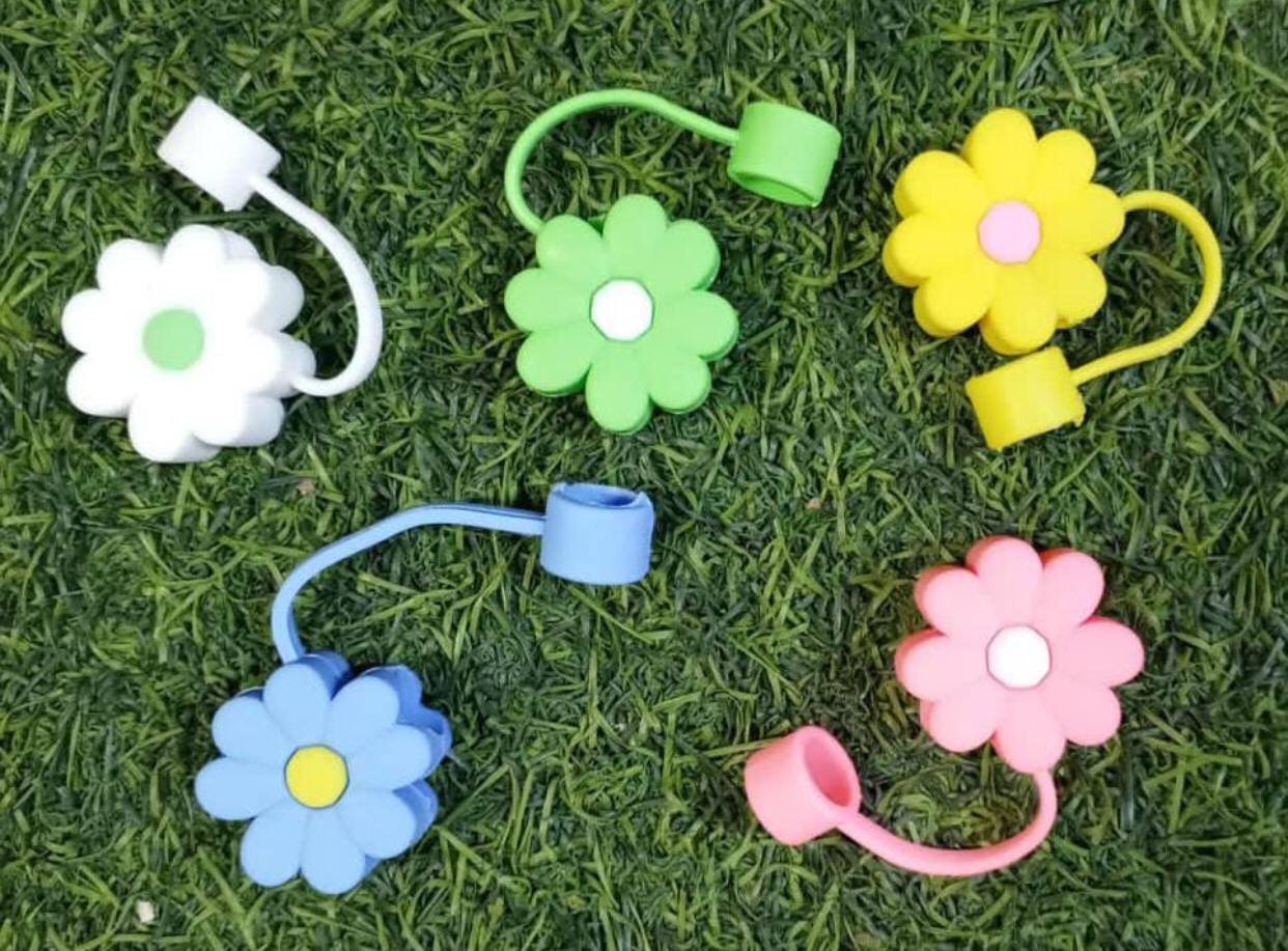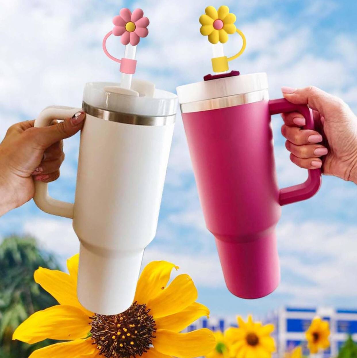 Personalize your tumbler with our 3-piece Flower Straw Cover Set! Compatible with Stanley 30oz & 40oz and Simple Modern with Handle, these silicone straw toppers come in blue, white, pink, green, and yellow. Stylish, protective, and perfect for on-the-go sipping!