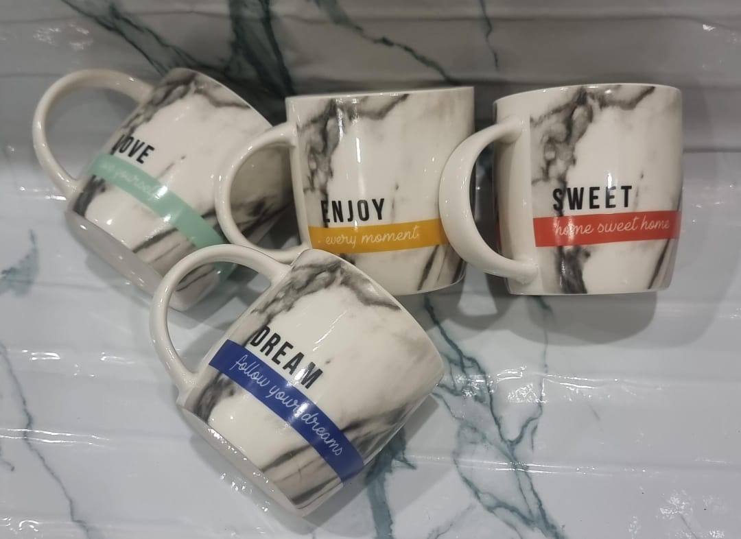 Chic Set of 6 Ceramic Cups — each set features 4 unique, stylish designs for a modern, eye-catching look. Perfect for coffee, tea, or hot beverages. Durable, easy to clean, and ideal for everyday use or gifting.
