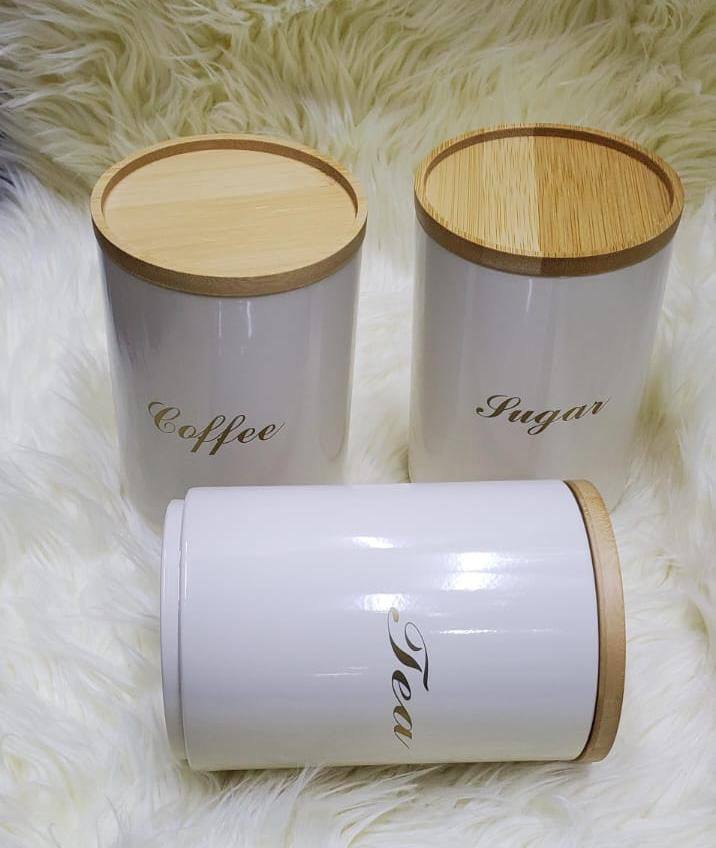 Elevate your kitchen with our stylish sugar, tea, and coffee canisters! Made from durable alloy with a bamboo lid, they keep contents fresh and organized. Available in elegant white and green, these canisters add a modern touch to any countertop