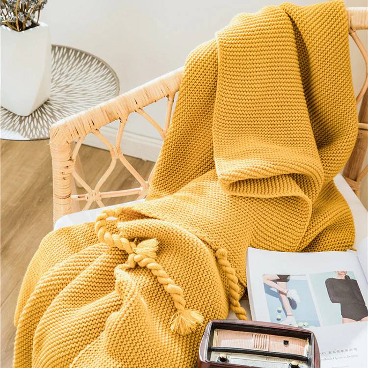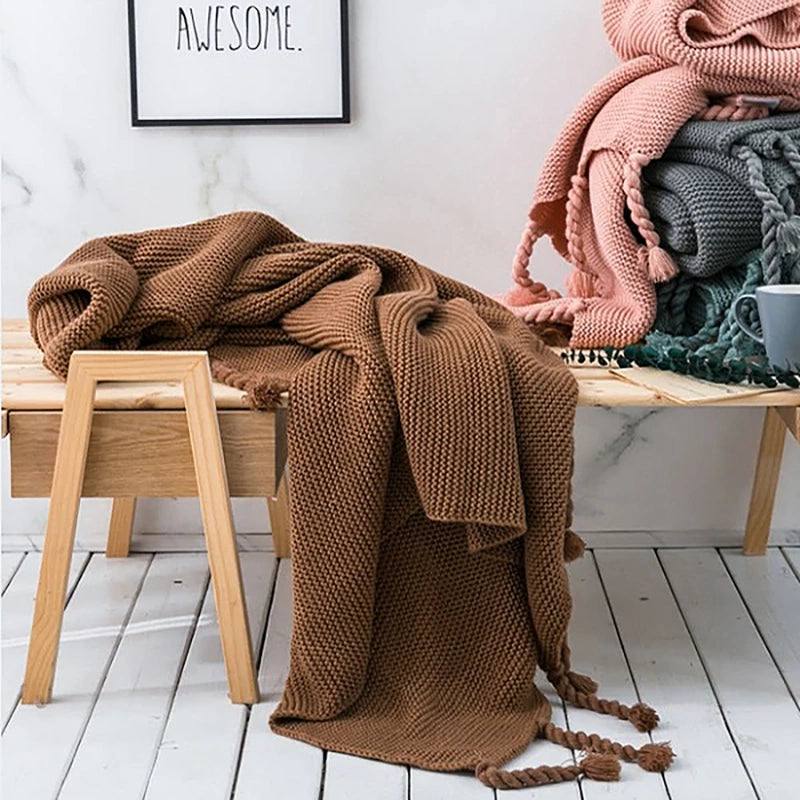 Transform your space with these super soft knitted throw blankets with tassels. Crafted in premium acrylic fiber, their simple yet elegant design (170*130cm) adds texture and cozy warmth to any decor—perfect for every modern home.