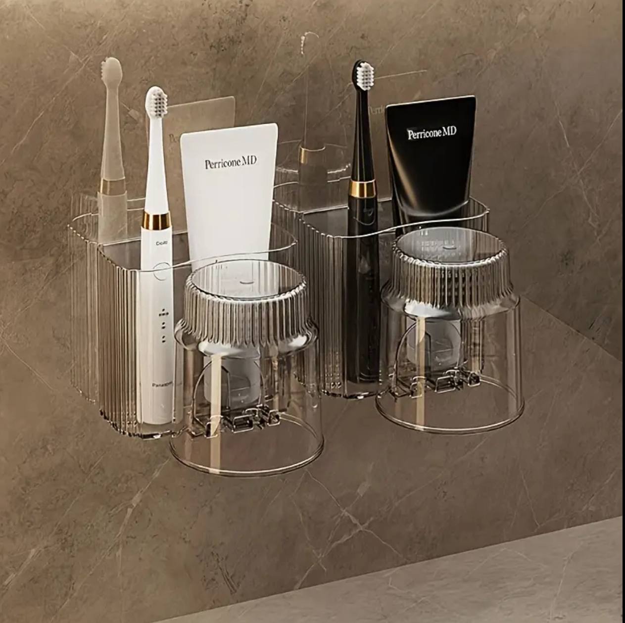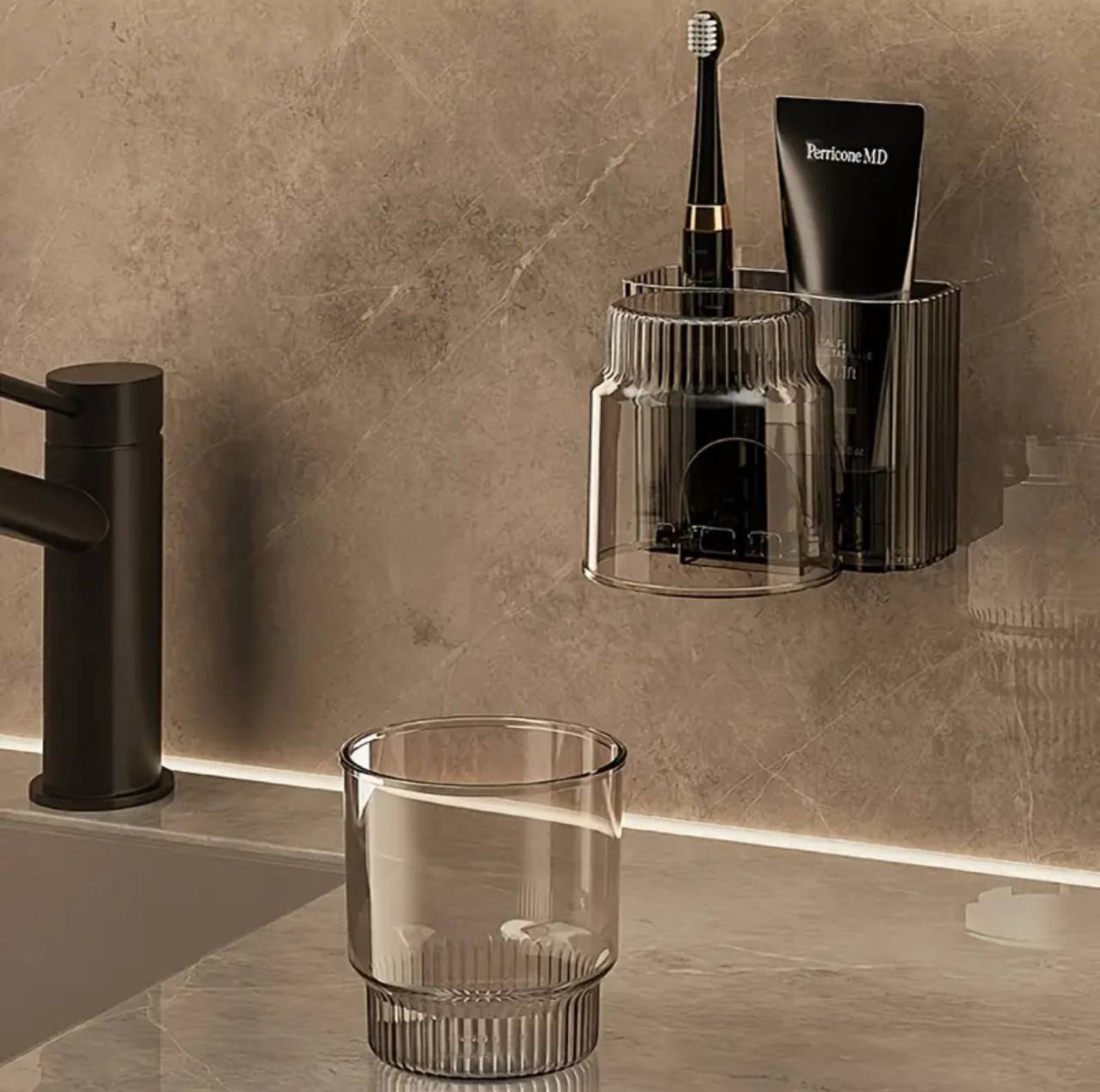 Keep your bathroom tidy with our Wall-Mounted Toothbrush Holder and Mouthwash Cup set! A sleek, multifunctional organizer for toothbrushes and toothpaste. Space-saving, stylish, and easy to install. Available in clear, black, and red.