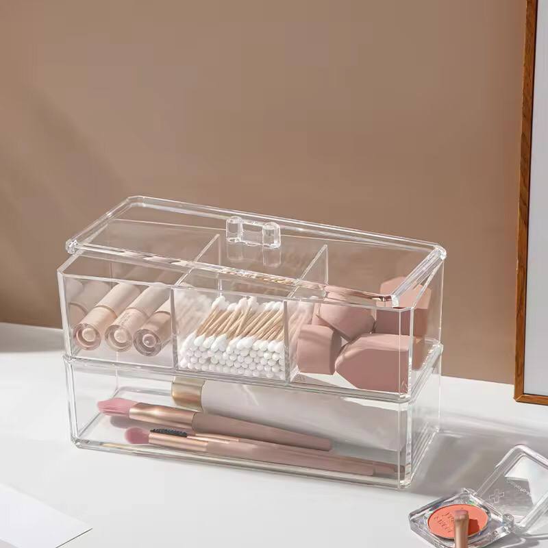 Transparent Cosmetic Storage Box Makeup Organizer Cotton Swab Cotton Pad Storage Box Desktop Acrylic Organizer