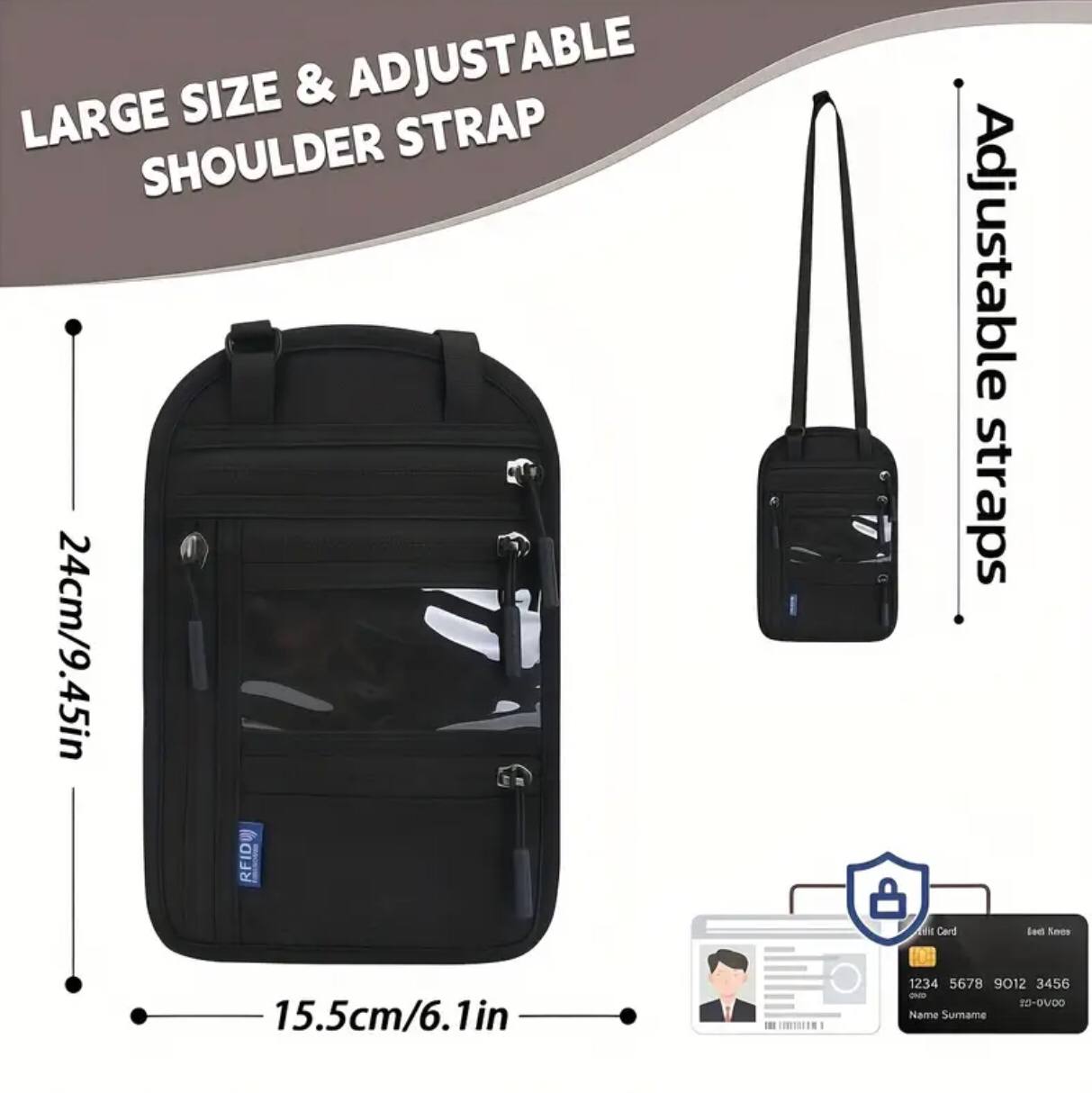 Stay organized and secure with our Travel Document Hanging Bag! Featuring 5 spacious compartments and RFID-friendly protection, it keeps your essentials safe from digital theft. Sleek and durable in classic black, it’s the perfect travel companion for any journey.