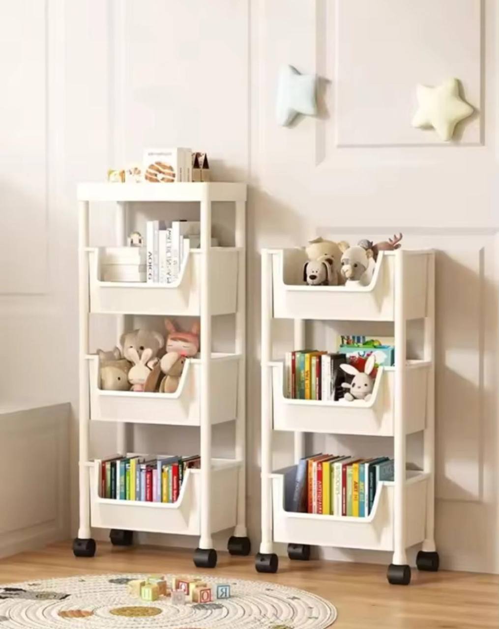 Maximize space with our Trolley Bookshelf & Slit Storage Cabinet! Perfect for kitchen corners, bathrooms, or living rooms. This narrow, movable organizer rack keeps essentials tidy and accessible. Sleek design fits tight spaces—ideal for modern, clutter-free homes.