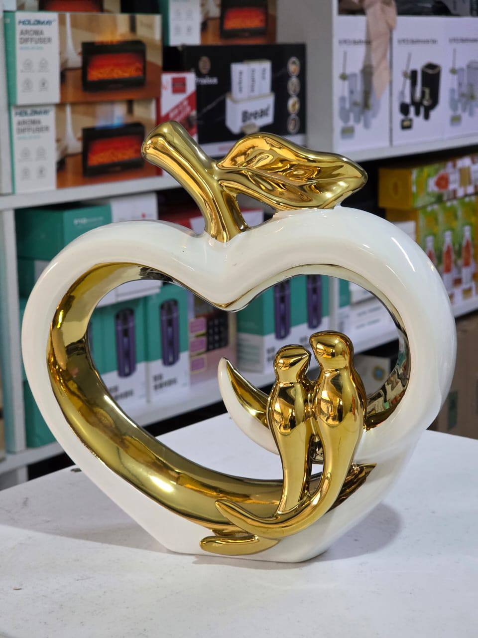 Elevate your space with this elegant ceramic golden bird apple sculpture. A handcrafted centerpiece, perfect for living rooms, offices, or bookshelves. Adds light luxury charm and artistic flair to any modern decor.