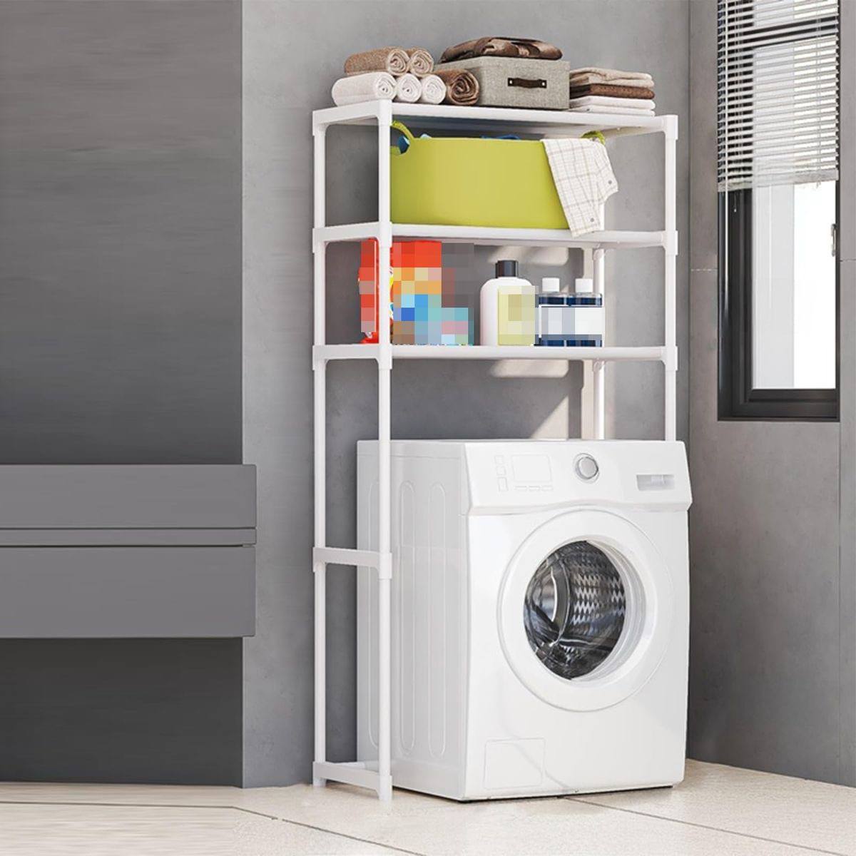 Maximize space with this sturdy washing machine rack! Available in black or white, it offers extra storage for detergents and essentials—perfect for keeping your laundry area neat and organized.
