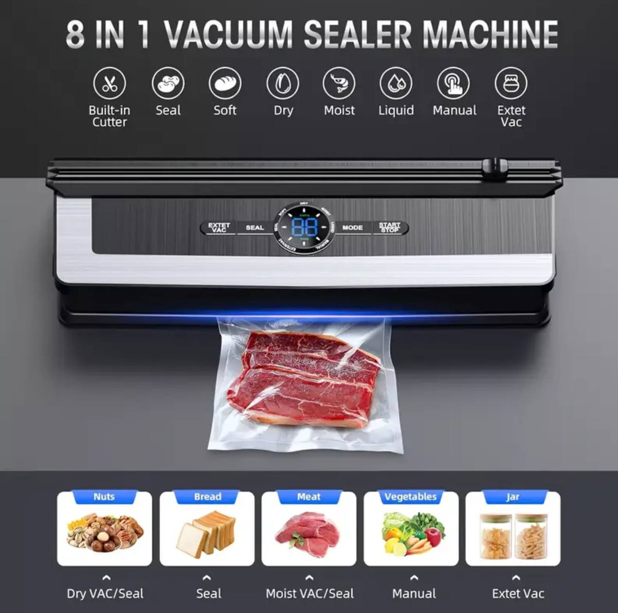 Preserve food freshness with our Vacuum Sealing Machine. Featuring 8 vacuum modes, it offers versatile sealing options for various food types. Keep your meals fresh longer, reduce waste, and maintain flavor with this efficient and easy-to-use vacuum sealer.