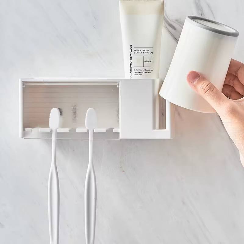 Keep your bathroom tidy with this wall-mounted toothbrush and toothpaste holder with cup storage. Designed for convenience, it saves space while keeping essentials organized and within reach. Durable, stylish, and easy to install, it's the perfect addition to any modern bathroom