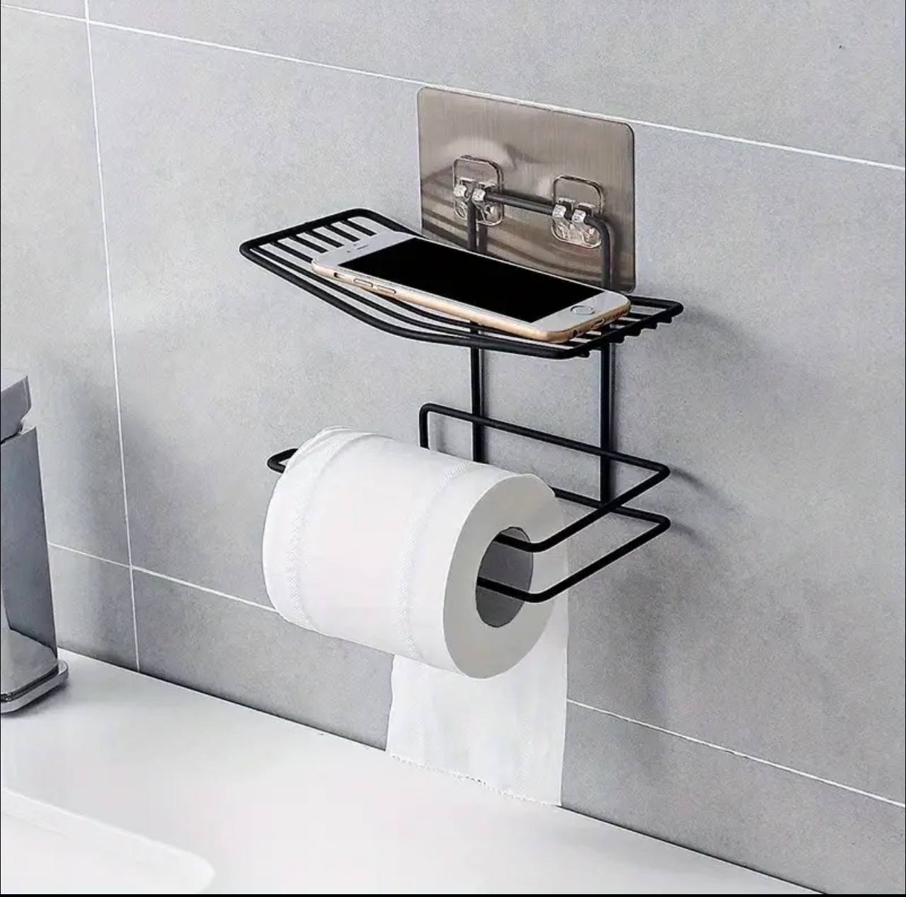A stylish wall-mounted wrought iron tissue holder featuring a durable adhesive sticker for easy installation. Its elegant design adds a decorative touch while providing convenient storage for tissue rolls, perfect for bathrooms, kitchens, or any home space.