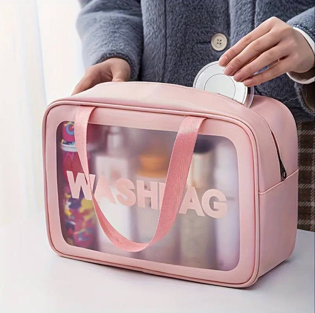 Stay organized with the Waterproof Cosmetics Bag! Featuring a portable, large capacity design in durable, transparent PVC. Perfect for storing cosmetics or toiletries, it comes in stylish black and pink colors—ideal for travel or everyday use. Keep your essentials secure and accessible!