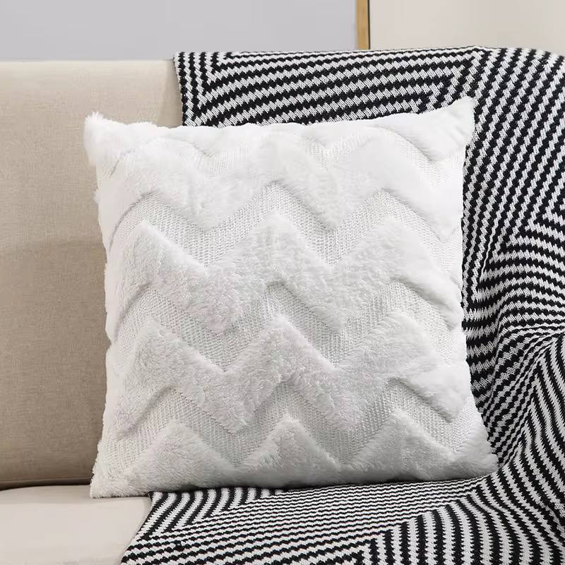 Wave Pattern Luxey Pillowcase Solid Color Plush Cushion Cover