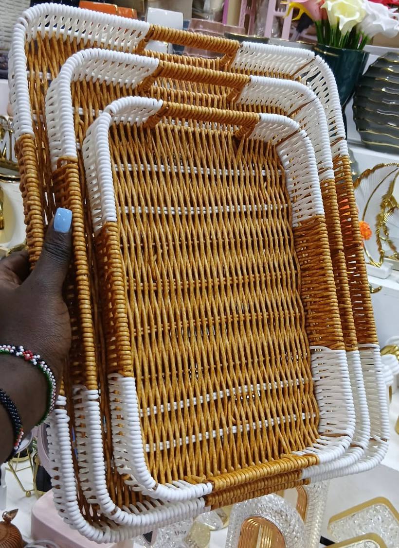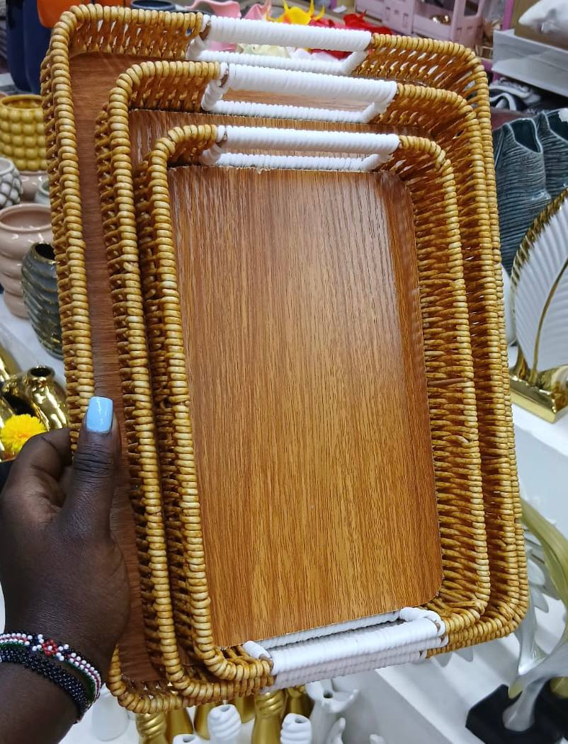 Enhance your home with this 3-piece woven tray set. Perfect for serving, organizing, or decor. Handcrafted with natural texture, each tray offers style and functionality. Ideal for kitchens, coffee tables, or countertops. Elegant and durable.