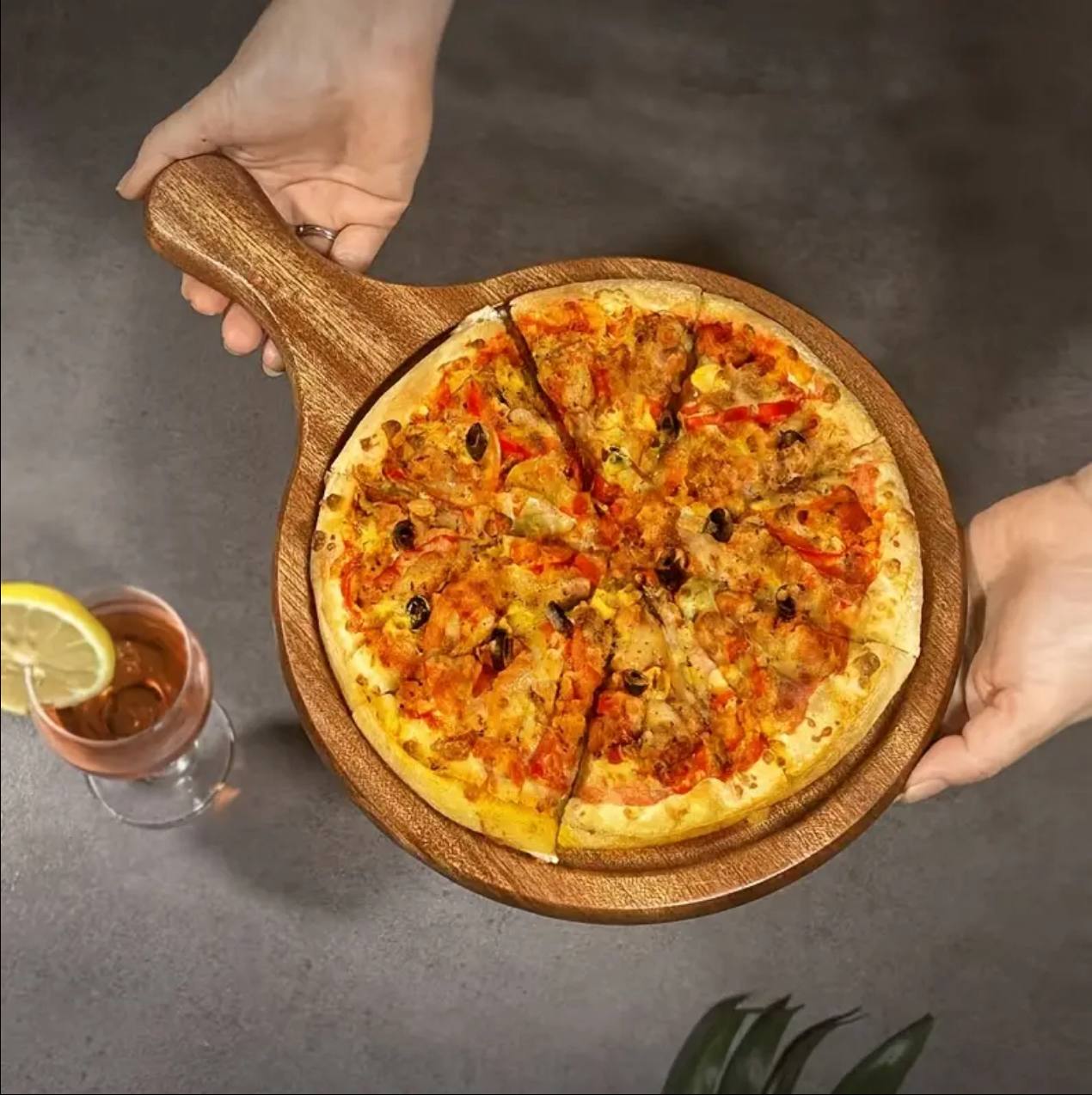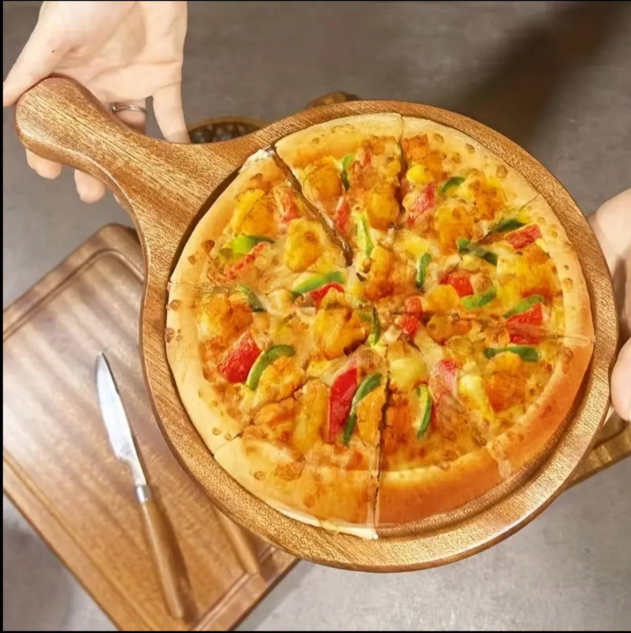 Serve and slice in style with our Wooden Bamboo Pizza Plate & Chop Board, small size 18×26cm. Eco-friendly, durable, and elegant—perfect for pizzas, snacks, or kitchen prep!